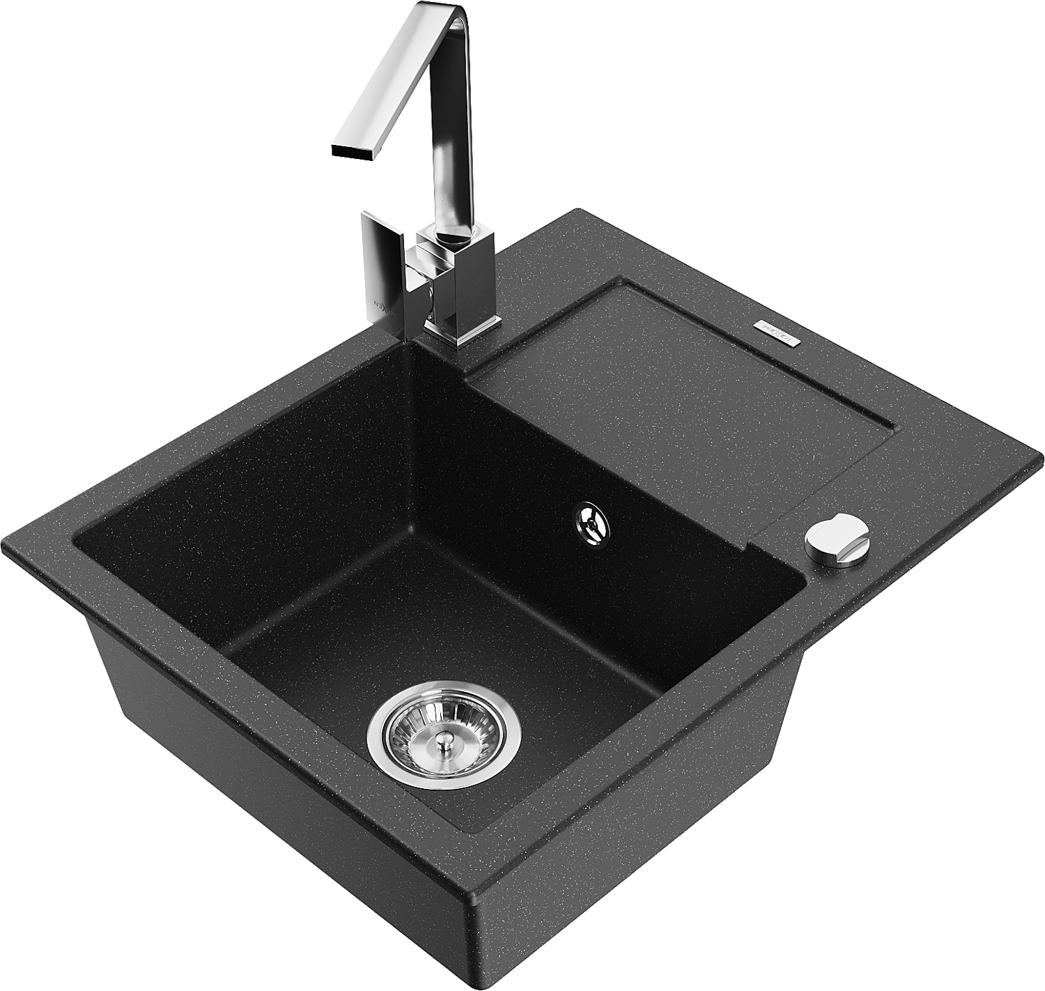 Mexen Enzo 1 rekeszes gránit mosogató csepegtetővel és Rita konyhai csapteleppel, fekete/ezüst metál - 6506-73-670300-00