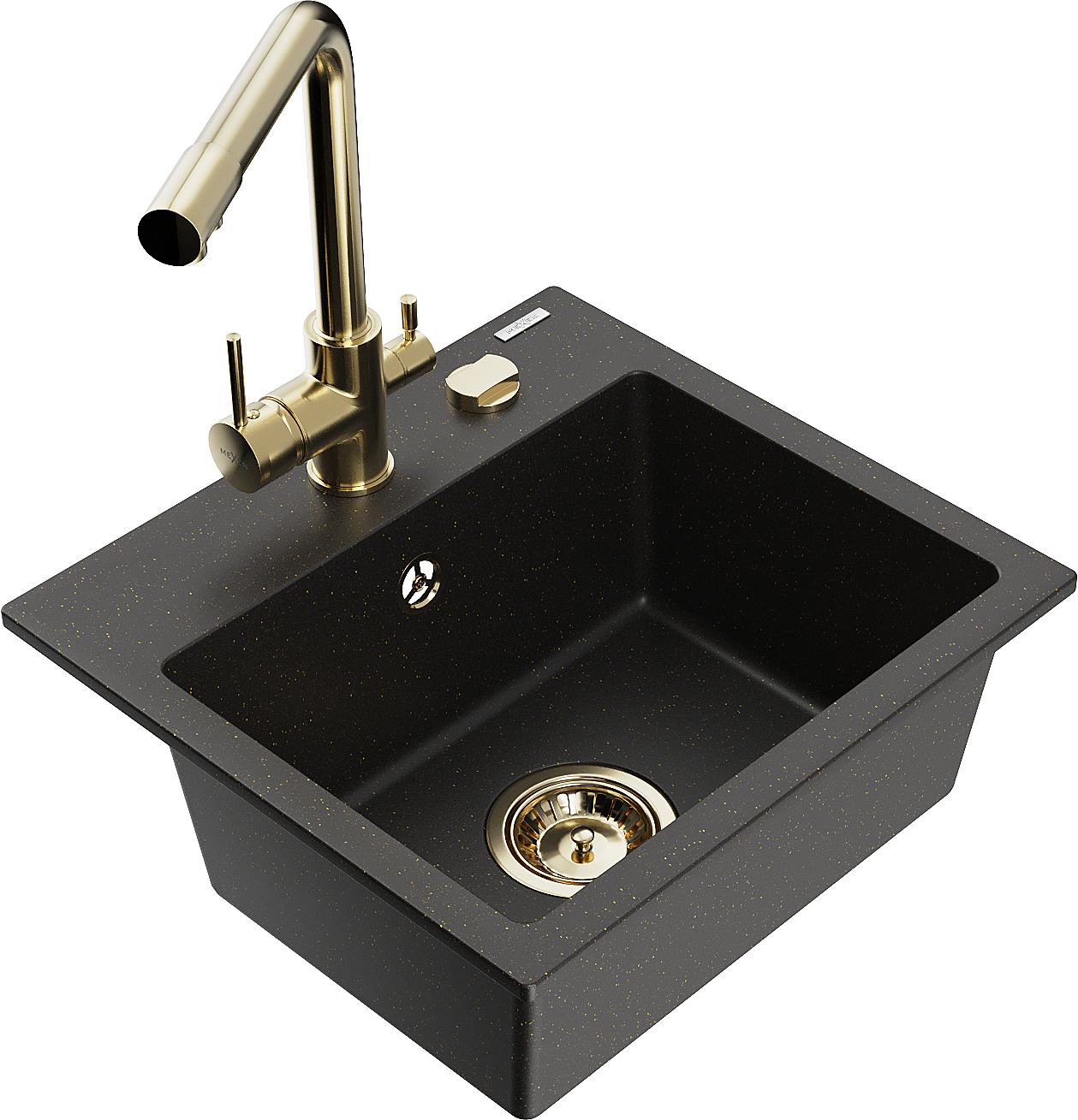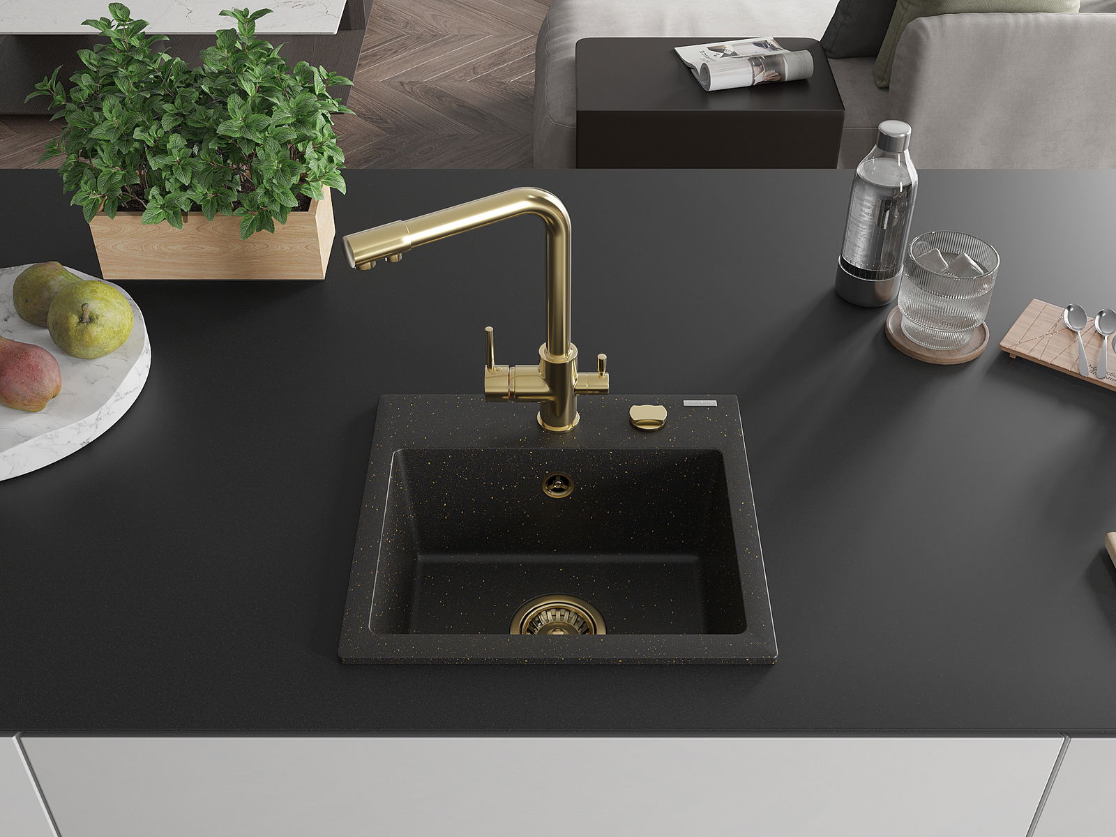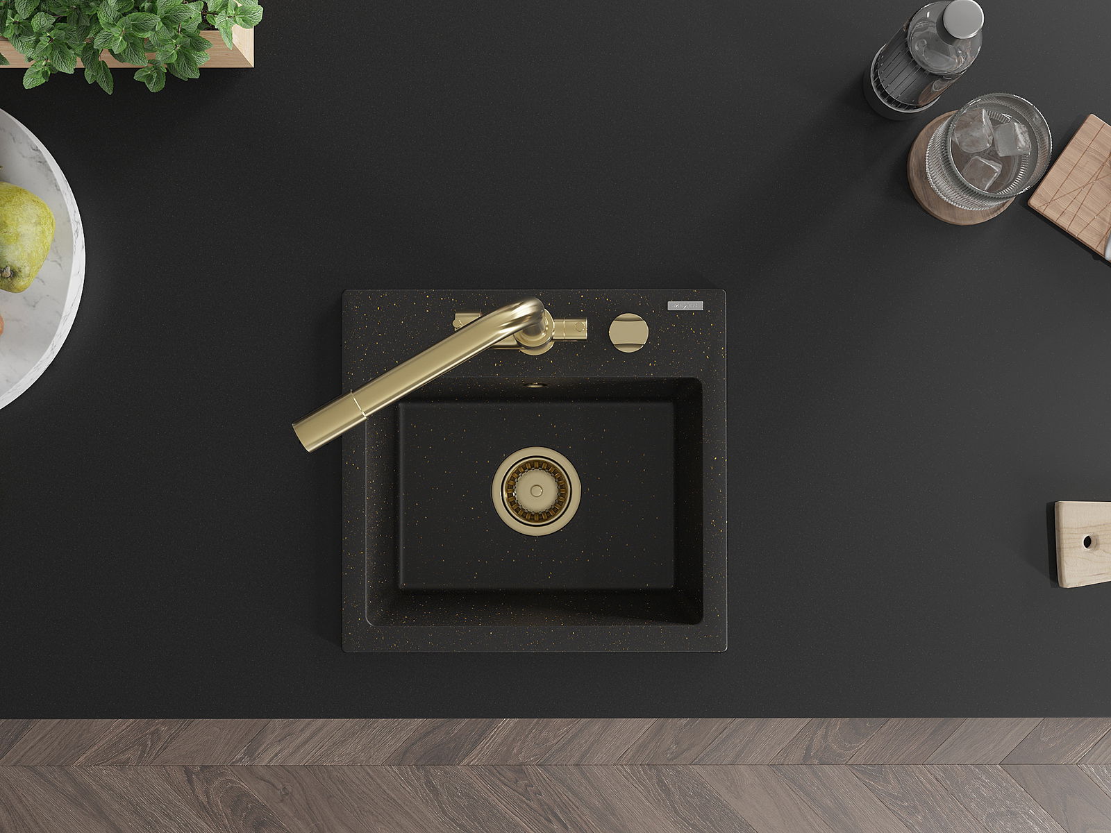 Mexen Milo 1 rekeszes gránit mosogató Duero konyhai csapteleppel, fekete/arany metál - 6505-75-671600-50