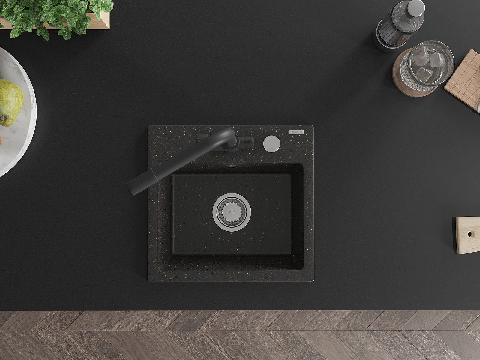Mexen Milo 1 rekeszes gránit mosogató Duero konyhai csapteleppel, fekete/arany metál - 6505-75-671600-70