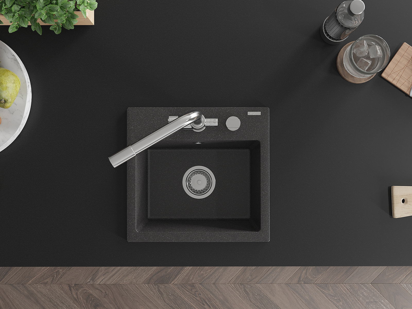 A mosogató magas minőségű gránitból készült. Elegáns, de mindenekelőtt praktikus kiegészítője minden konyhának, függetlenül annak stílusától. A gránit magas minősége és tartóssága hosszú távú használatot biztosít.