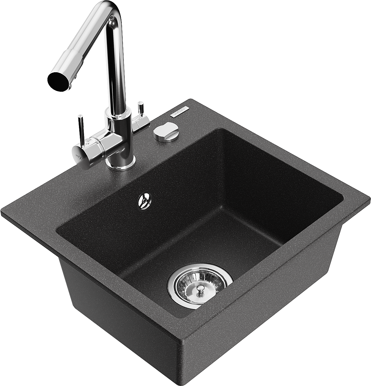 Mexen Milo gránit 1-medencés mosogató Duero konyhai csapteleppel, fekete pettyezett - 6505-76-671600-00