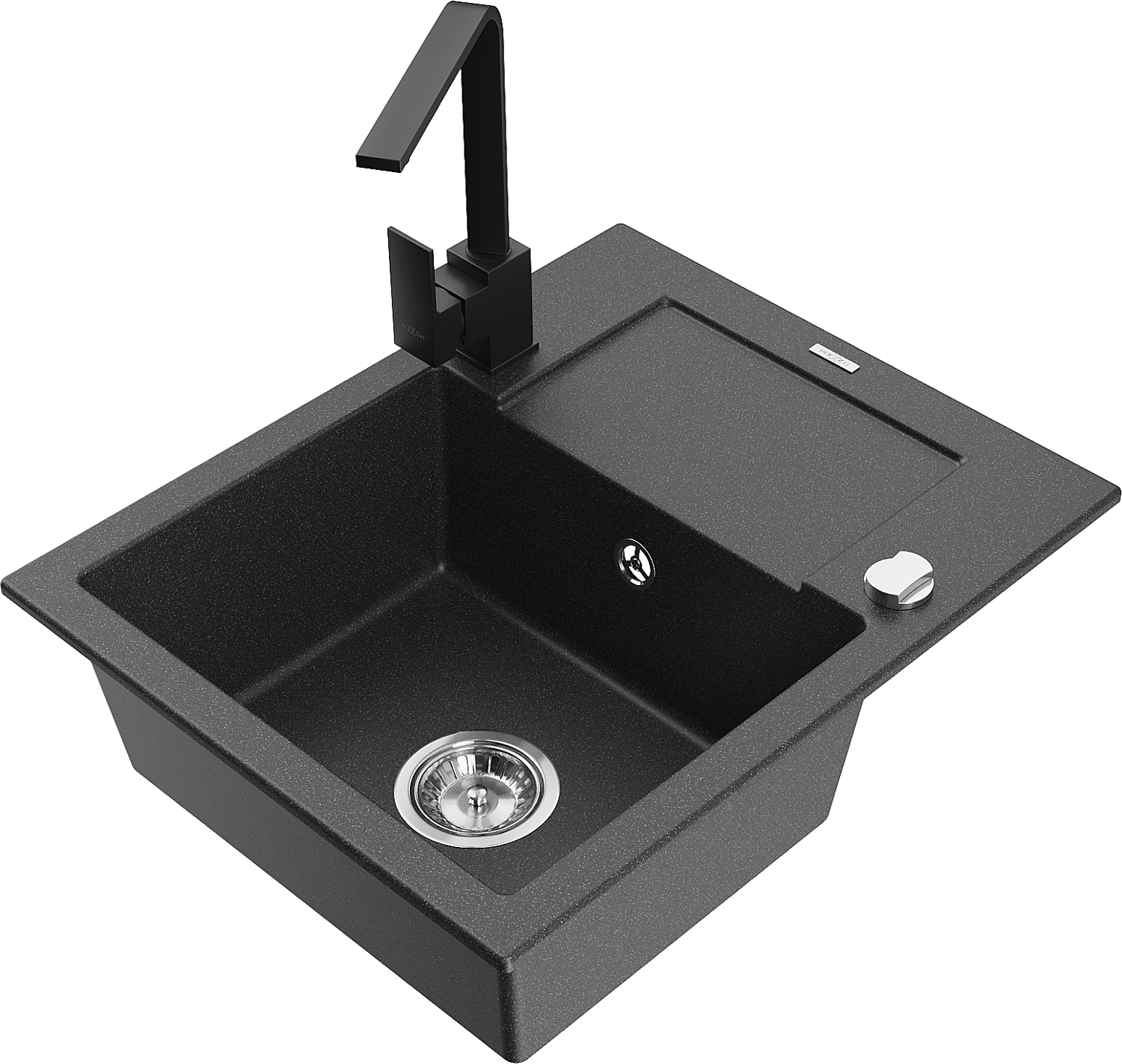 Mexen Enzo egykamrás gránit mosogató csepegtetővel és Rita konyhai csapteleppel, fekete pöttyös - 6506-76-670300-70