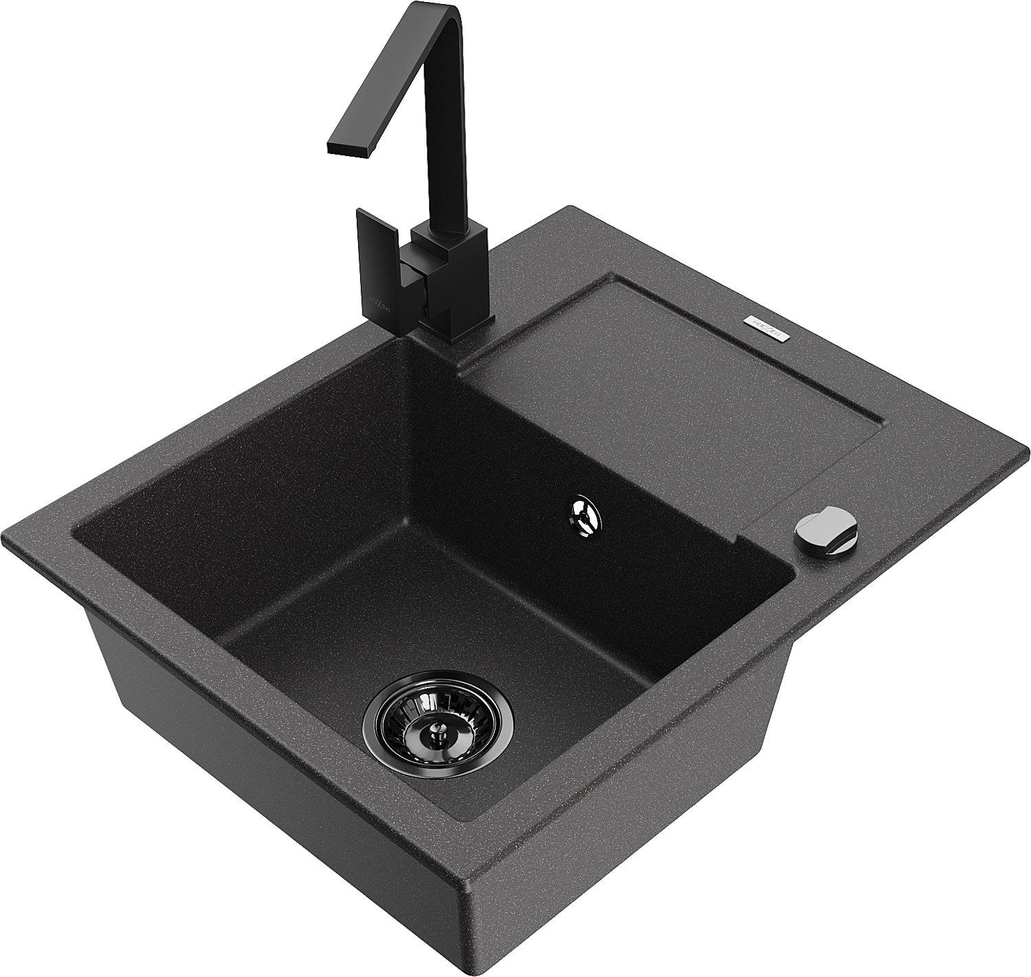 Mexen Enzo egymedencés gránit mosogató lefolyótálcával és Rita konyhai csapteleppel, fekete pöttyös - 6506-76-670300-70-B