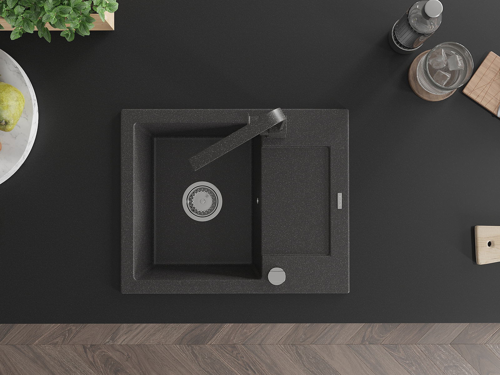 A mosogató magas minőségű gránitból készült. Elegáns, de mindenekelőtt praktikus kiegészítője minden konyhának, függetlenül annak stílusától. A gránit magas minősége és tartóssága hosszú távú használatot biztosít.