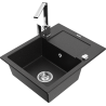 Mexen Enzo 1 rekeszes gránit mosogató csepegtetővel és Rita konyhai csapteleppel, fekete - 6506-77-670300-00