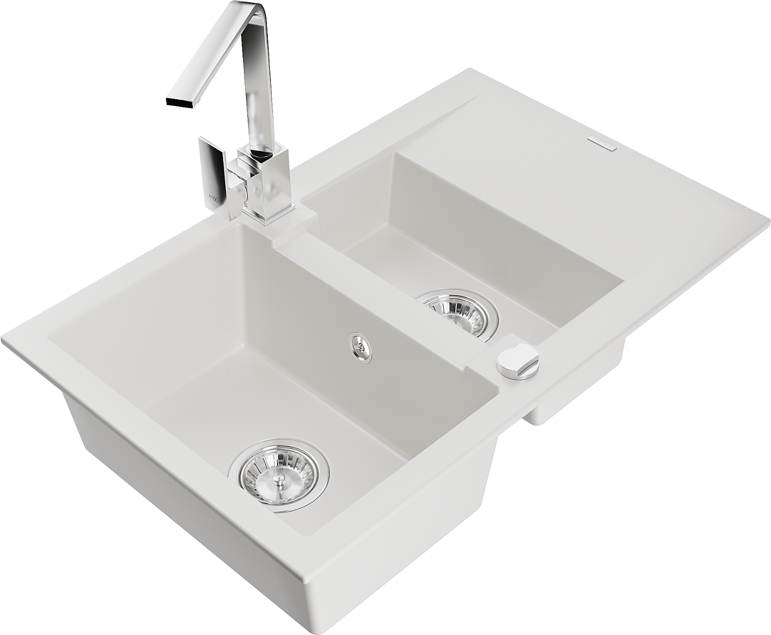 Mexen Gaspar gránit mosogató 1,5 medencével, csepegtetővel és Rita konyhai csapteleppel, fehér - 6507-20-670300-00
