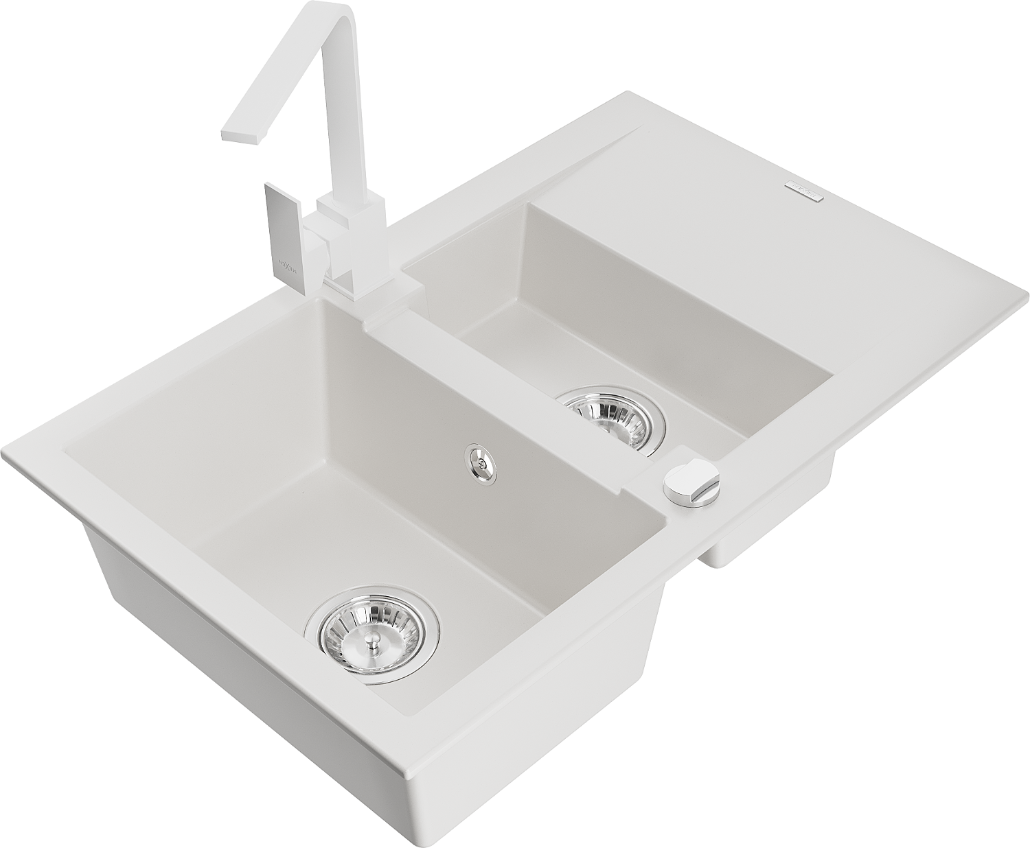 Mexen Gaspar gránit 1,5-medencés mosogató csepegtetővel és Rita konyhai csappal, fehér - 6507-20-670300-20