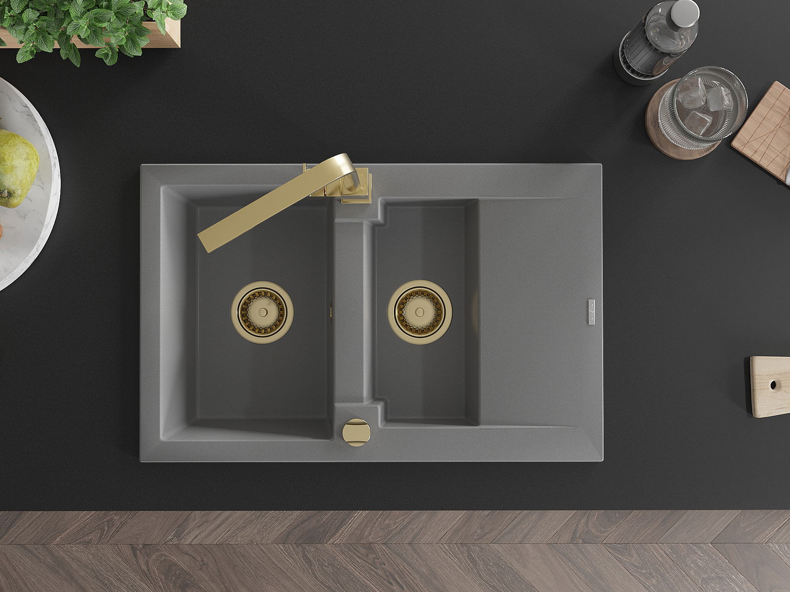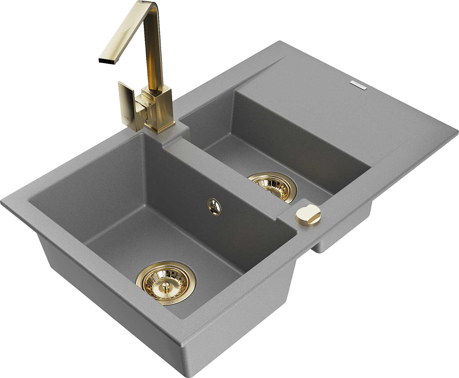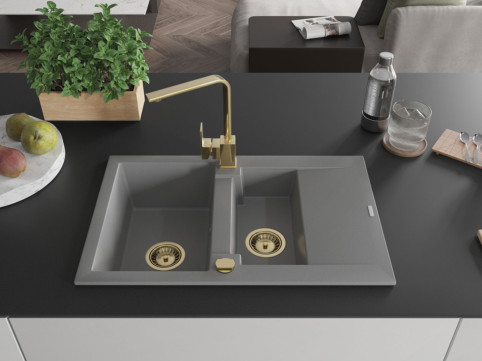 Mexen Gaspar 1,5 rekeszes gránit mosogató csepptálcával és Rita konyhai csappal, szürke - 6507-71-670300-50