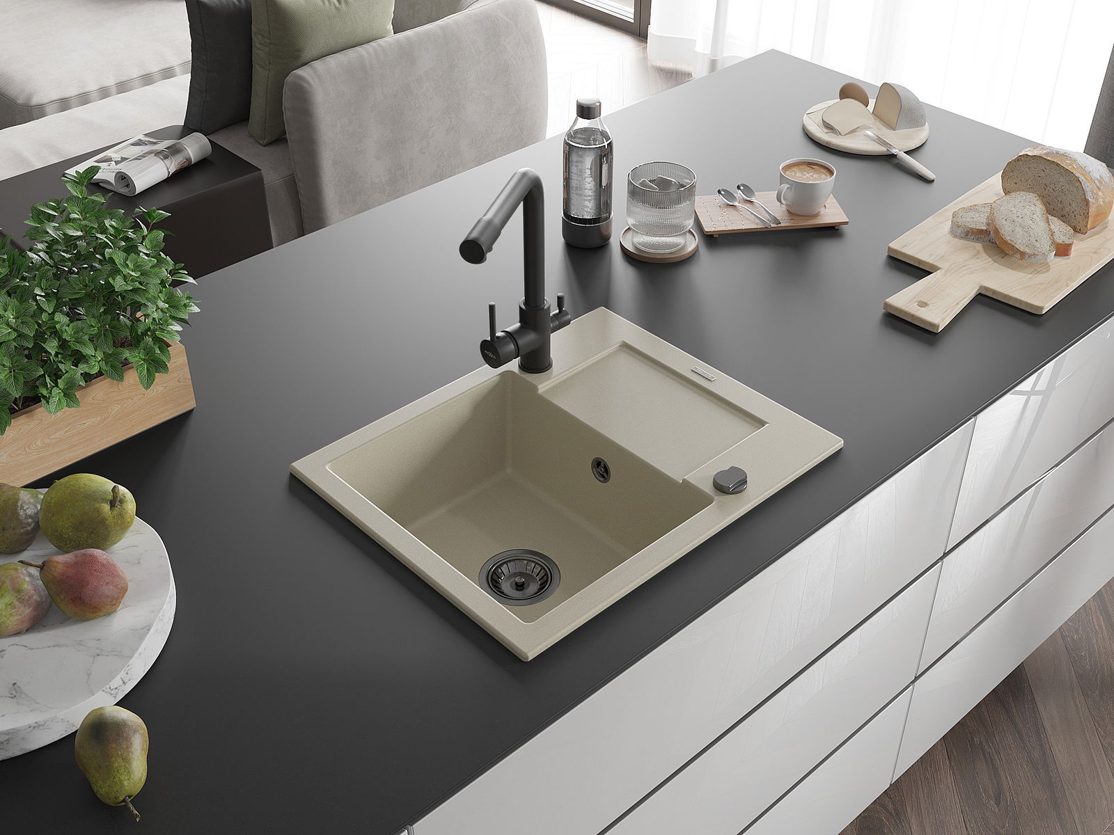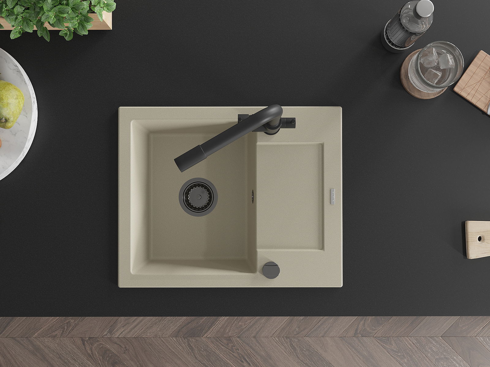 Mexen Enzo egymedencés gránit mosogató csepegtetővel és Duero konyhai csapteleppel, bézs - 6506-69-671600-70