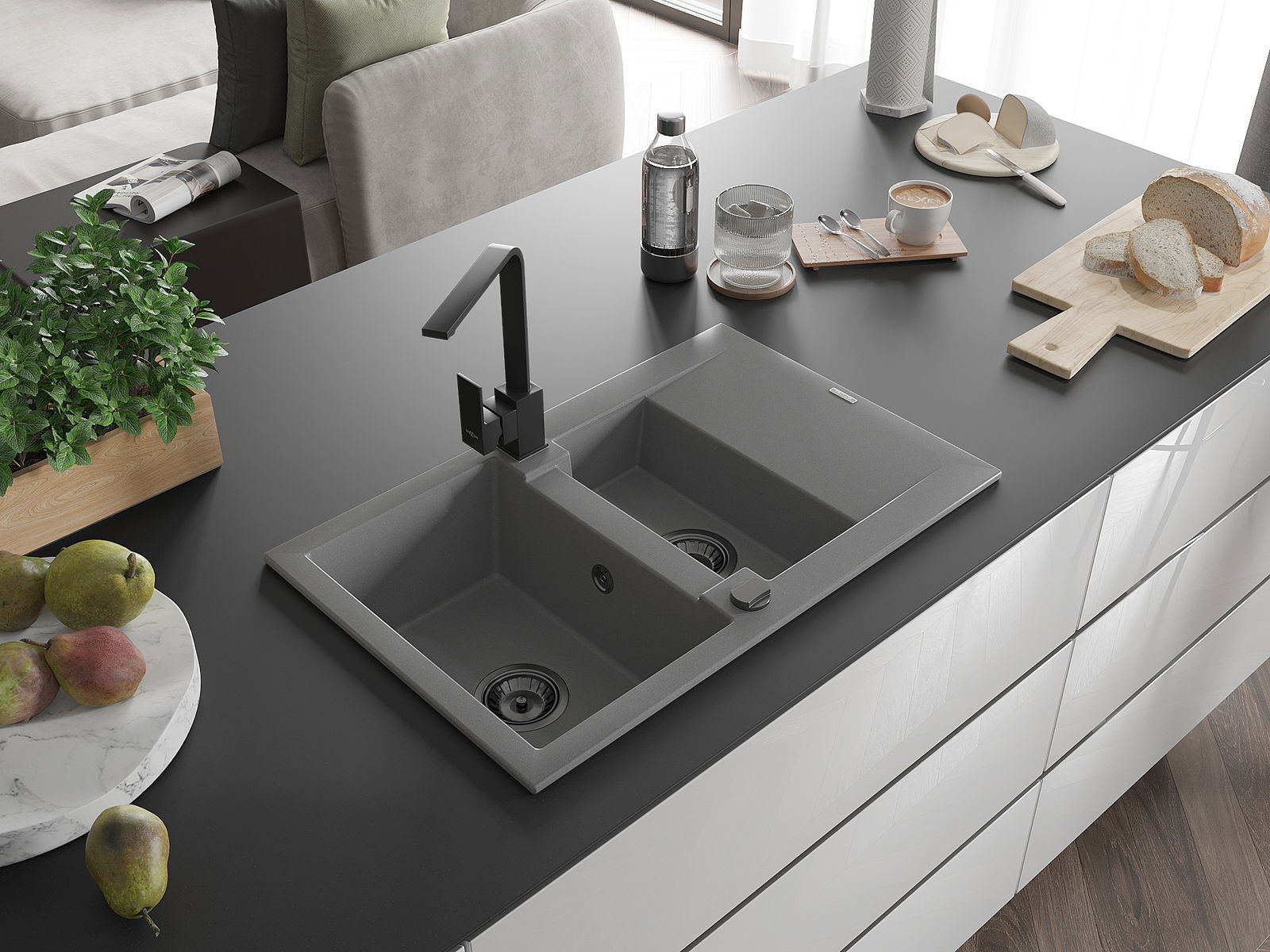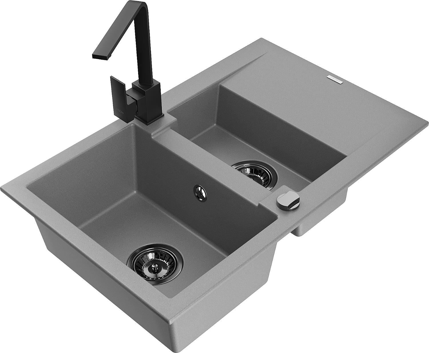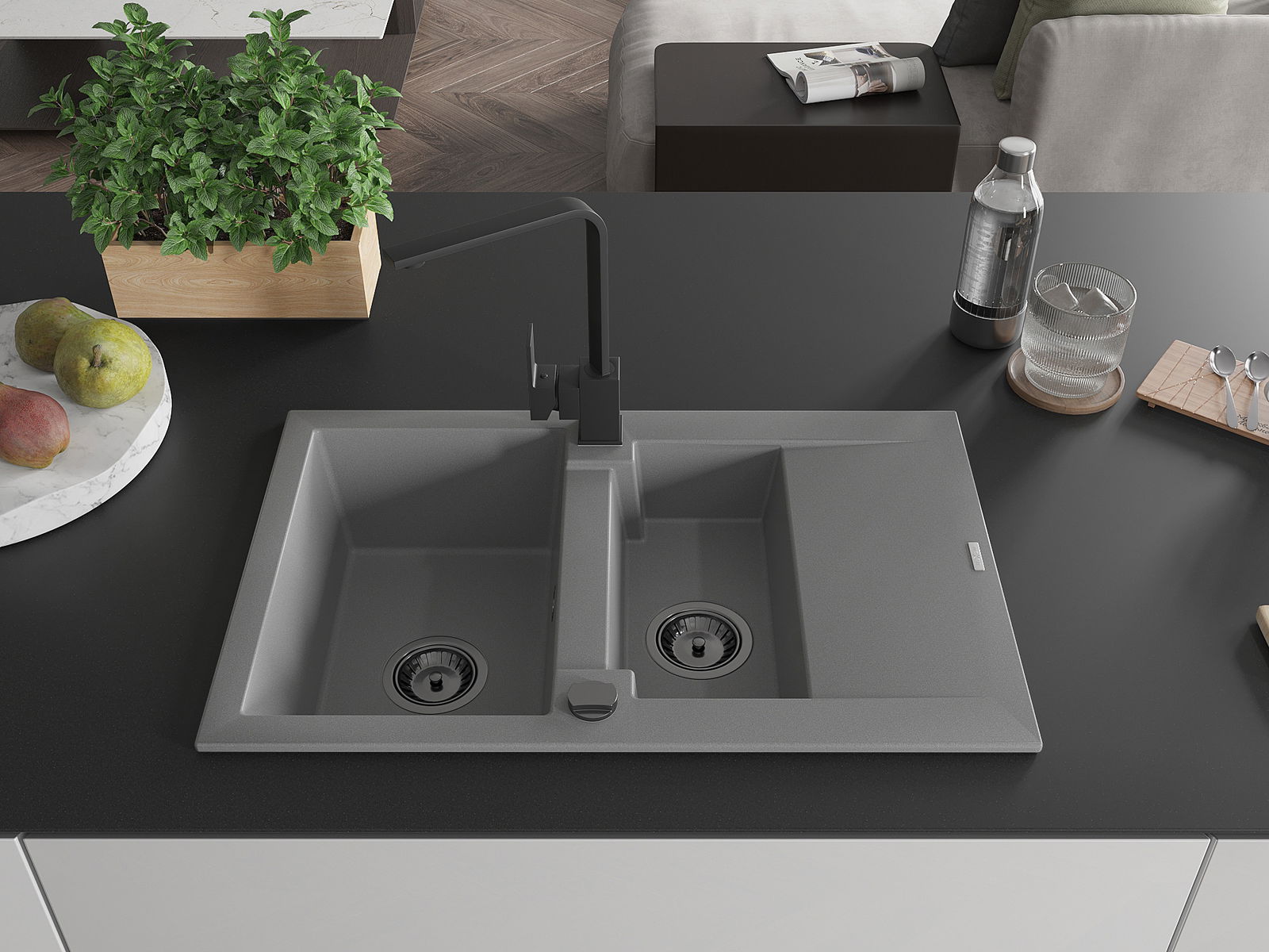 Mexen Gaspar 1,5-medencés gránit mosogató lefolyóval és Rita konyhai csapteleppel, szürke - 6507-71-670300-70-B