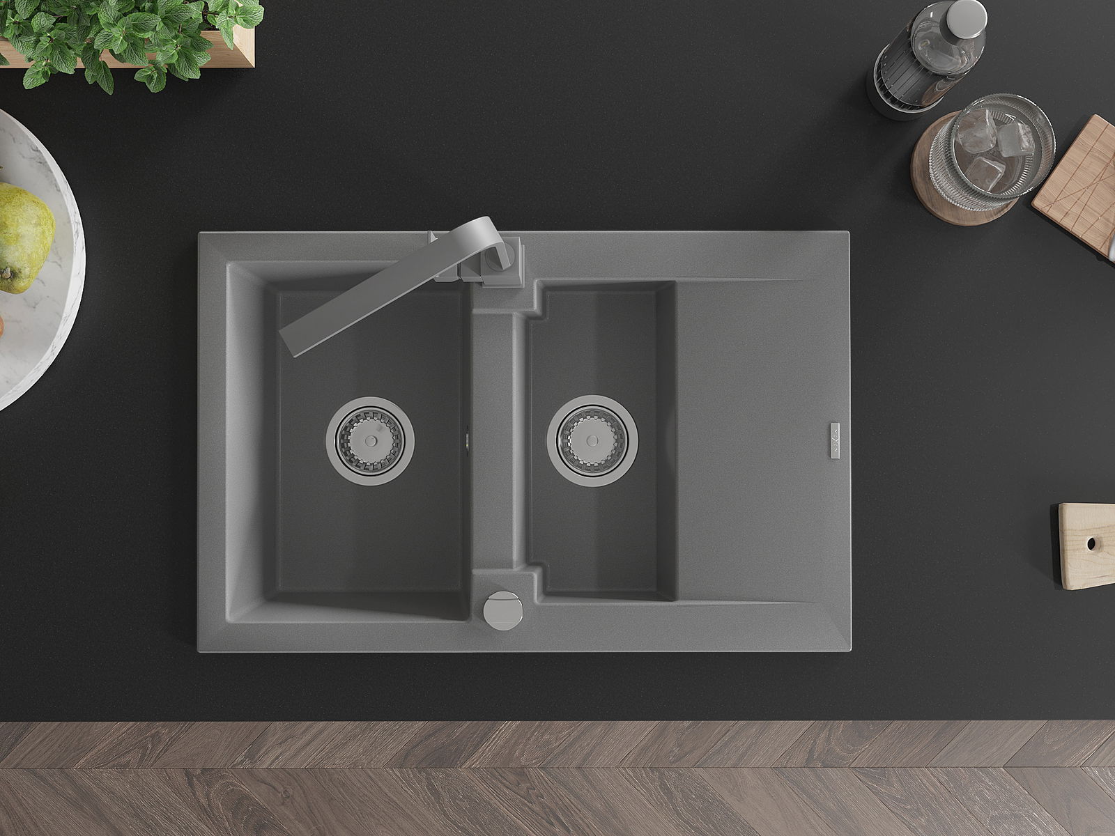 Mexen Gaspar 1,5 rekeszes gránit mosogatótálca csepegtetővel és Rita konyhai csapteleppel, szürke - 6507-71-670300-71