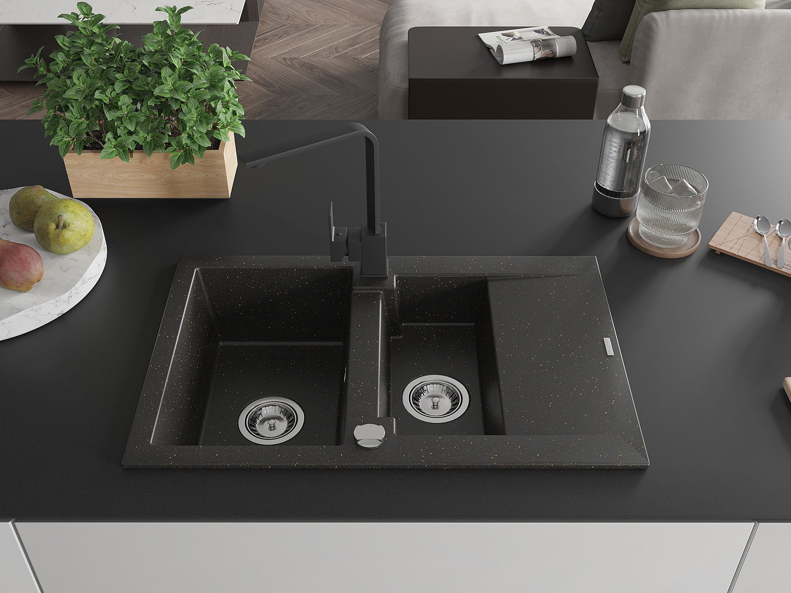 A mosogató magas minőségű gránitból készült. Elegáns, de mindenekelőtt praktikus kiegészítője minden konyhának, függetlenül annak stílusától. A gránit magas minősége és tartóssága hosszú távú használatot biztosít.
