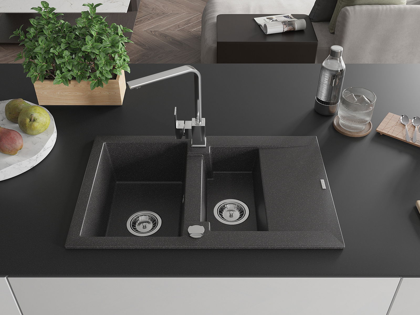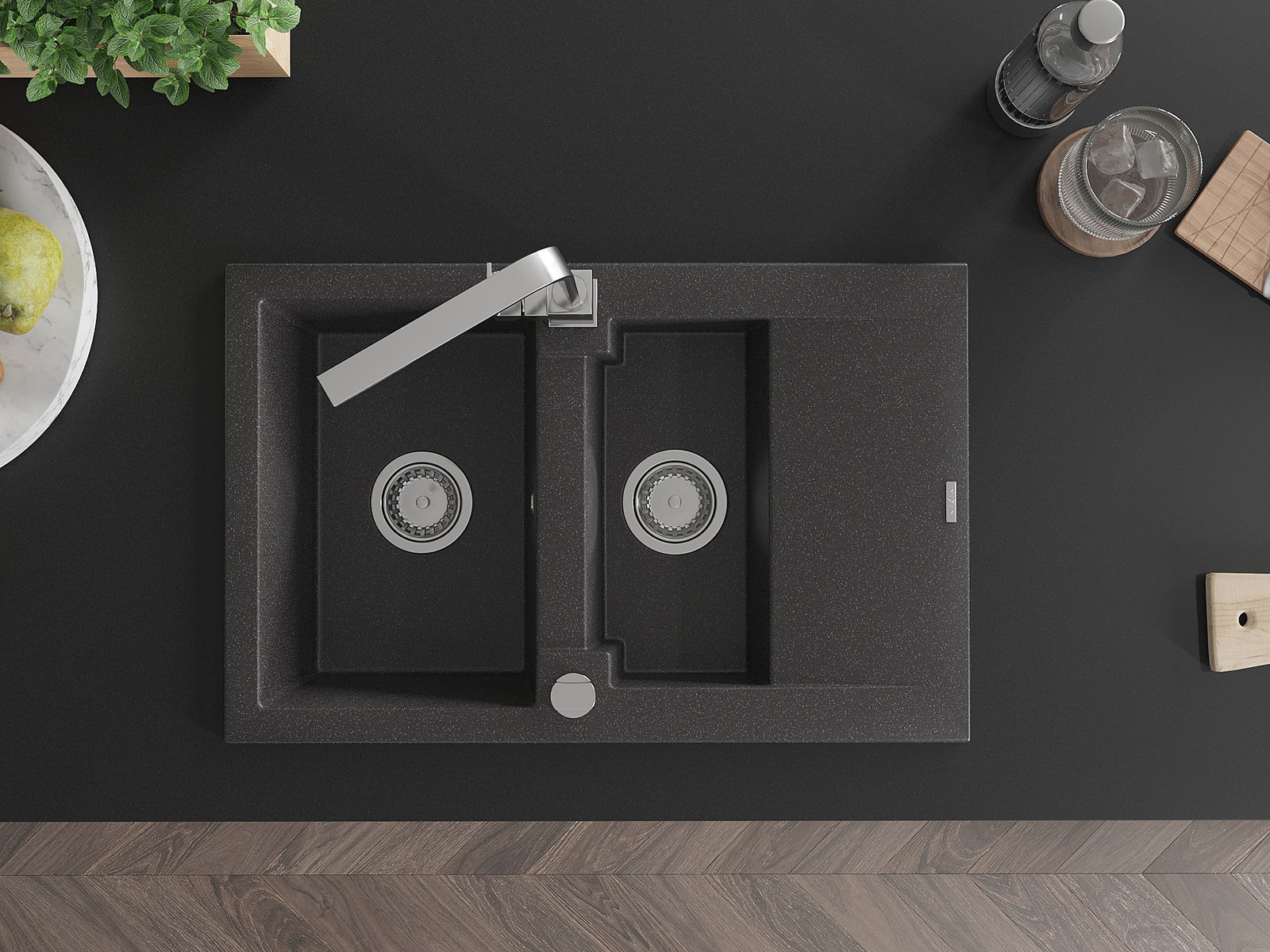 A mosogató magas minőségű gránitból készült. Elegáns, de mindenekelőtt praktikus kiegészítője minden konyhának, függetlenül annak stílusától. A gránit magas minősége és tartóssága hosszú távú használatot biztosít.