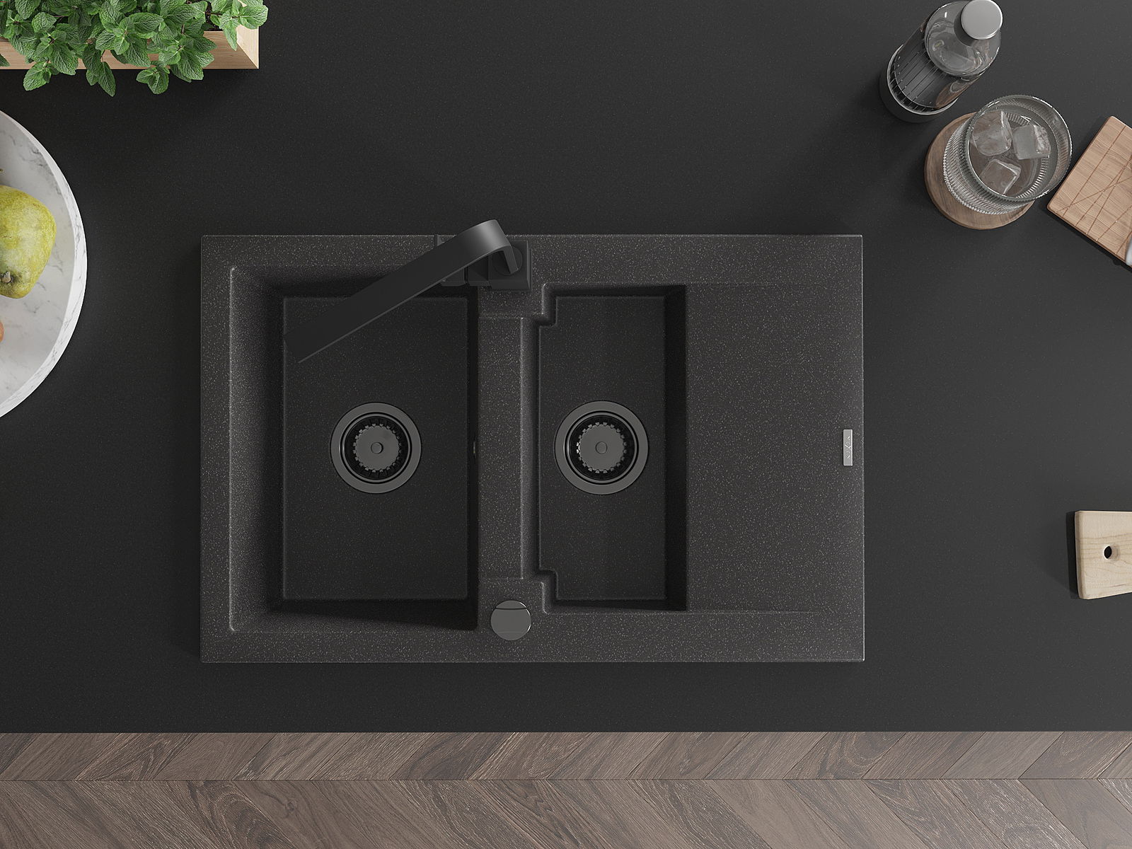 A mosogató magas minőségű gránitból készült. Elegáns, de mindenekelőtt praktikus kiegészítője minden konyhának, függetlenül annak stílusától. A gránit magas minősége és tartóssága hosszú távú használatot biztosít.