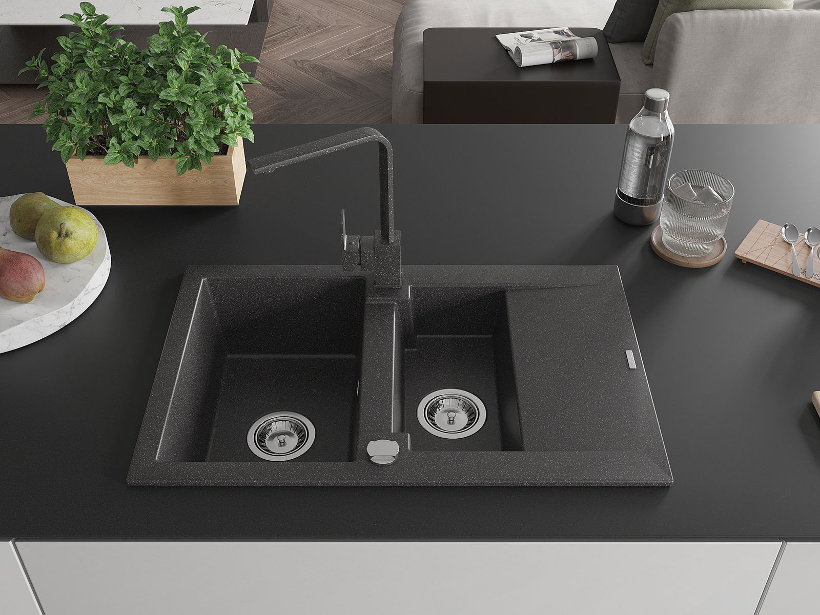 A mosogató magas minőségű gránitból készült. Elegáns, de mindenekelőtt praktikus kiegészítője minden konyhának, függetlenül annak stílusától. A gránit magas minősége és tartóssága hosszú távú használatot biztosít.