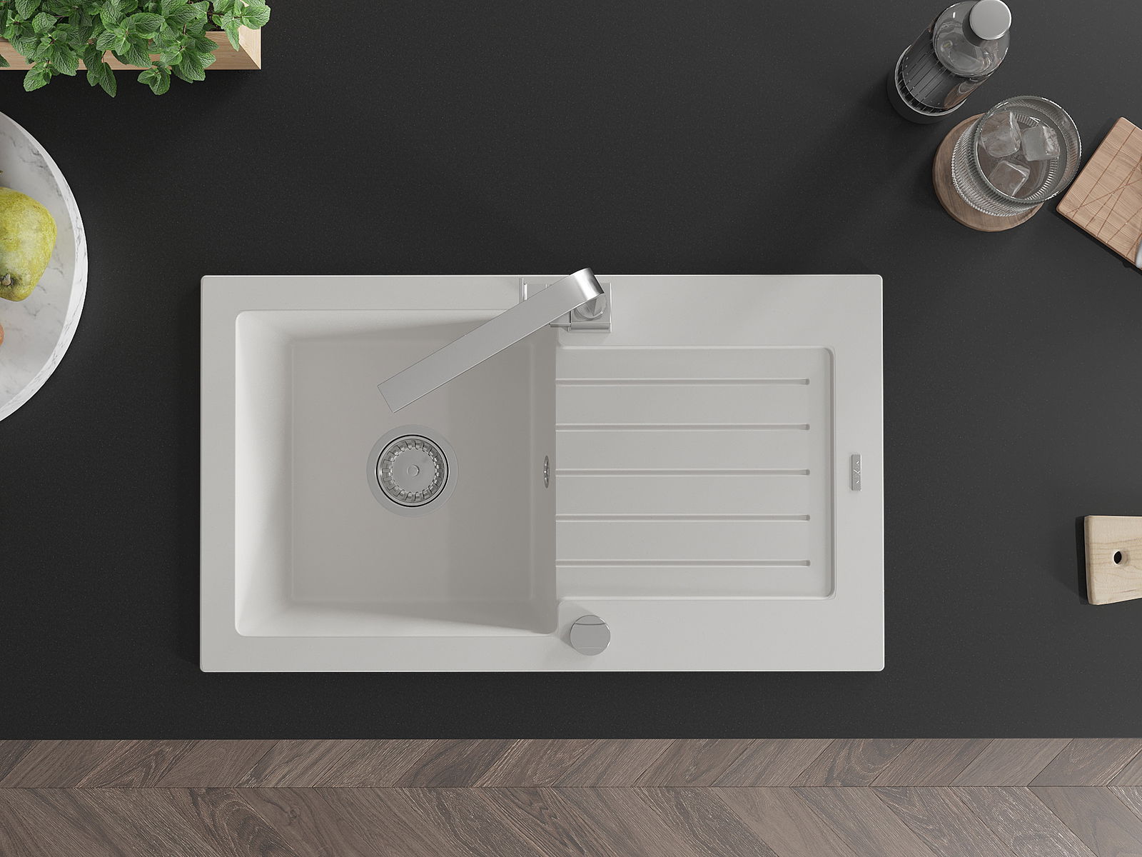 Mexen Pablo egymedencés gránit mosogató csepegtetővel és Rita konyhai csapteleppel, fehér - 6510-20-670300-00