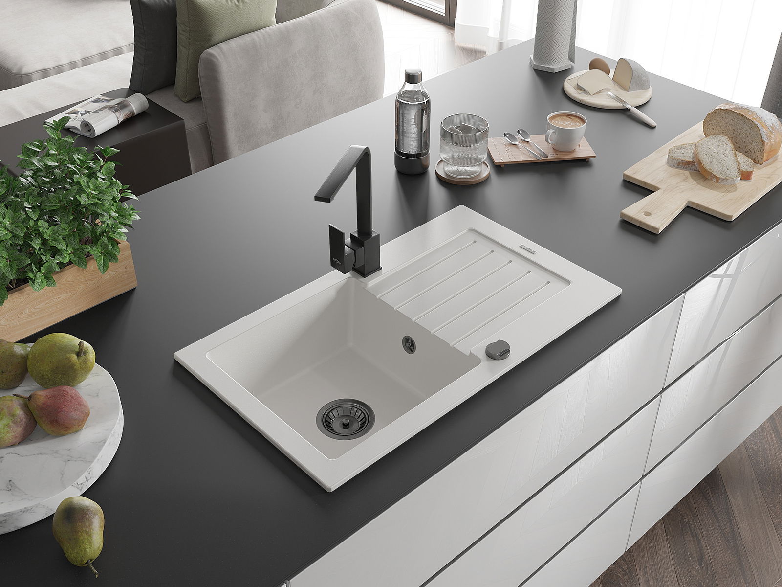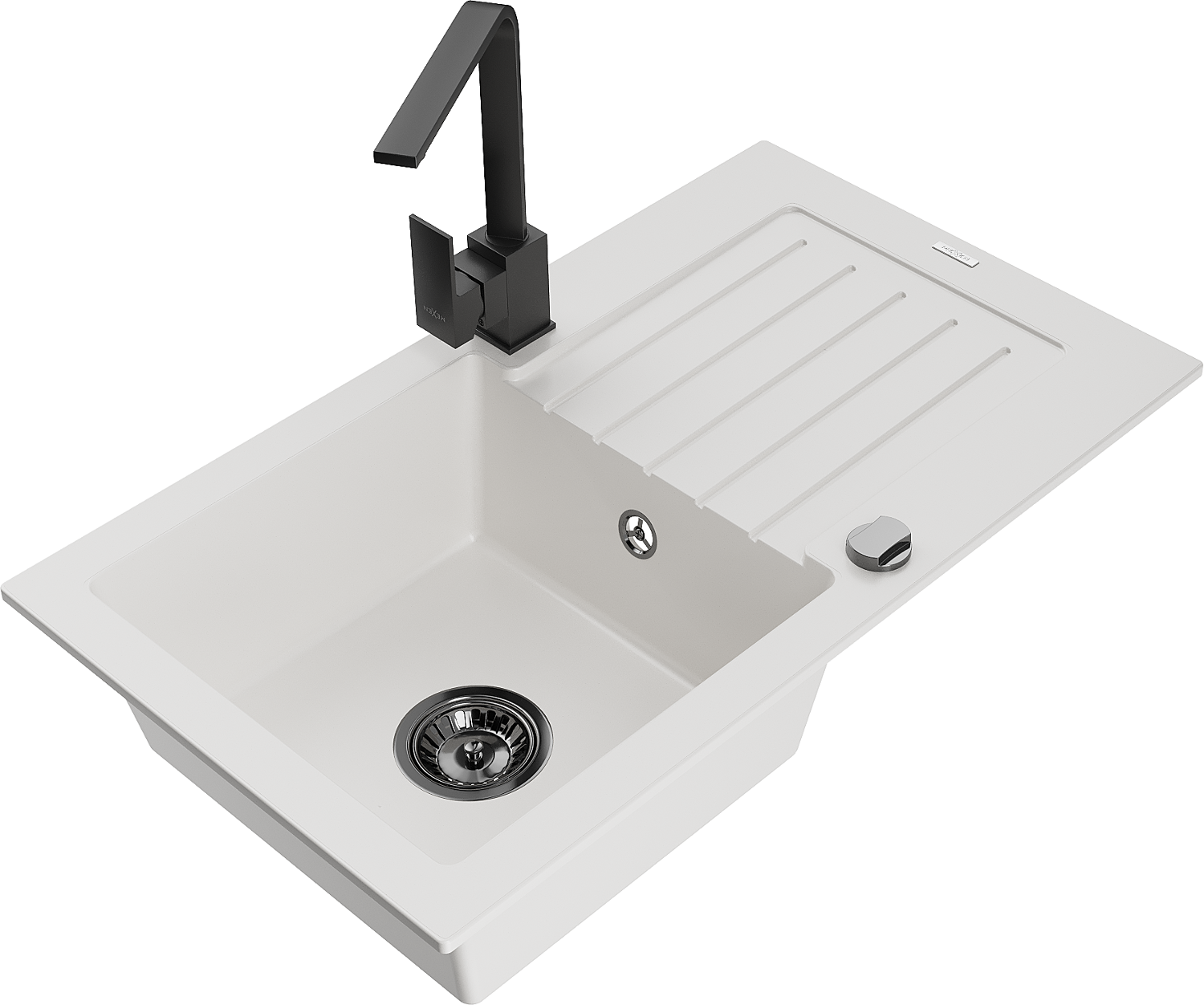 A mosogató magas minőségű gránitból készült. Elegáns, de mindenekelőtt praktikus kiegészítője minden konyhának, függetlenül annak stílusától. A gránit magas minősége és tartóssága hosszú távú használatot biztosít.