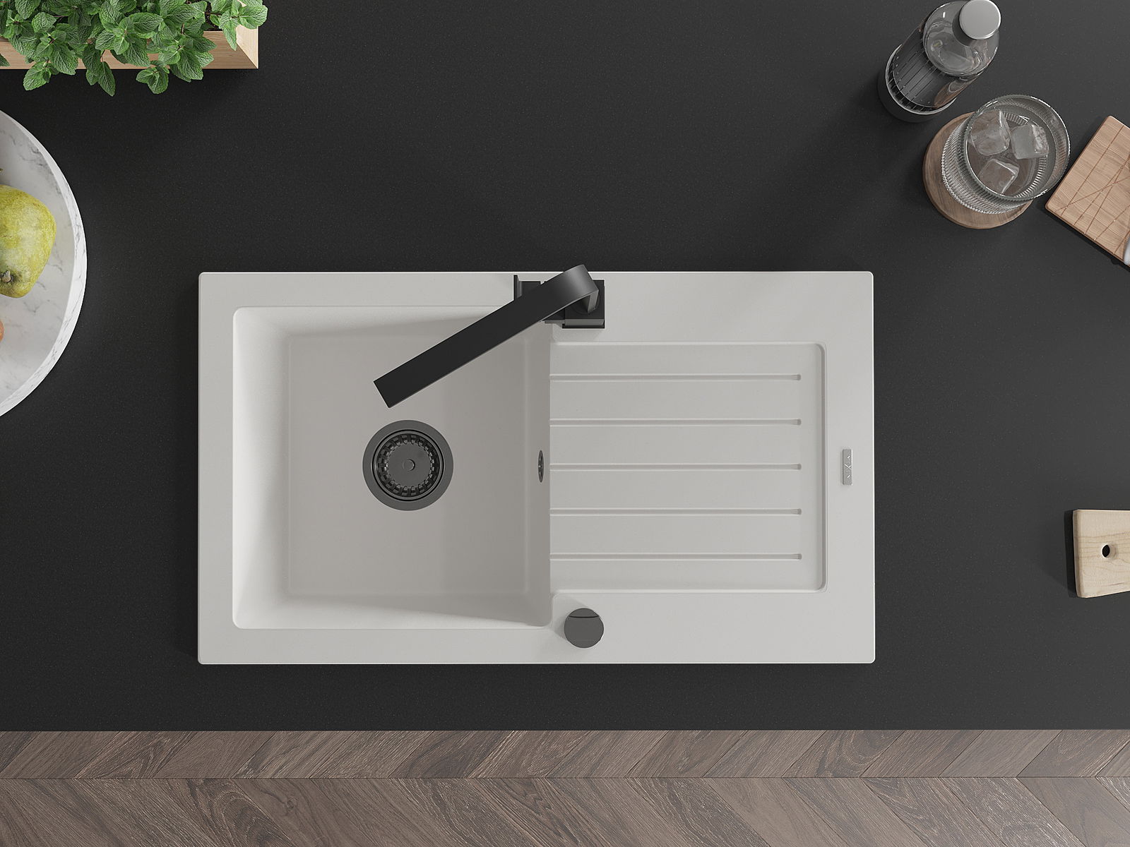 Mexen Pablo egymedencés gránit mosogató csepegtetővel és Rita konyhai csapteleppel, fehér - 6510-20-670300-70
