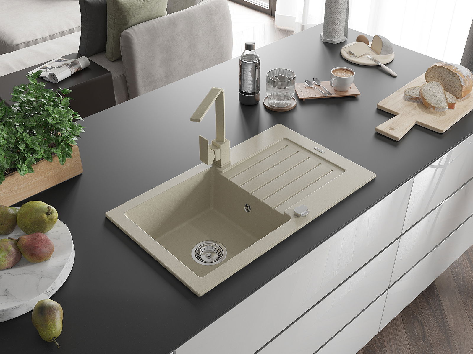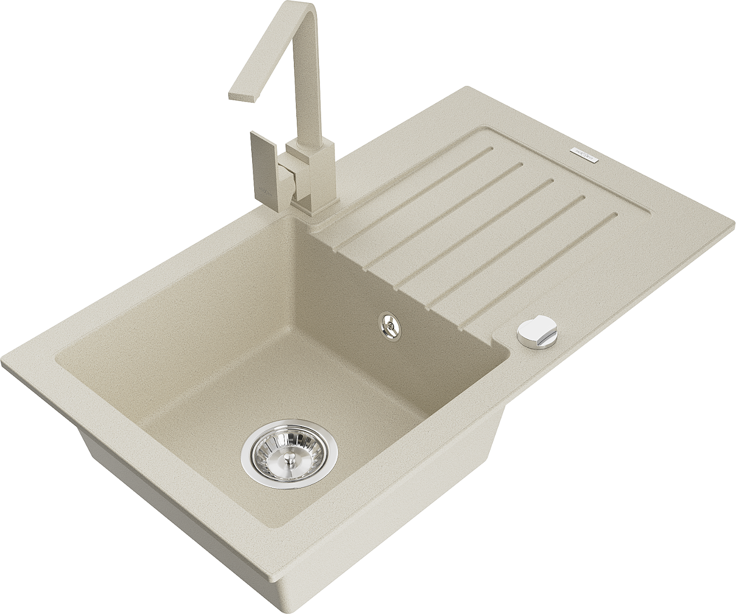 Mexen Pablo egymedencés gránit mosogató csepegtetővel és Rita konyhai csapteleppel, bézs - 6510-69-670300-69