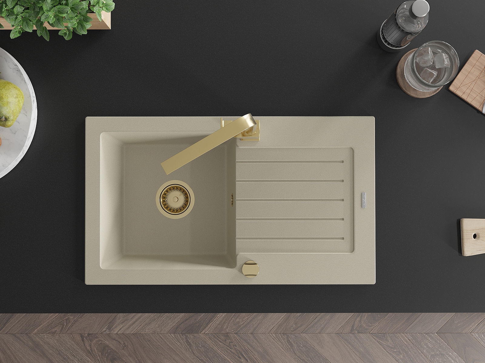 Mexen Pablo 1-medencés gránit mosogató csepegtetővel és Rita konyhai csapteleppel, bézs - 6510-69-670300-50