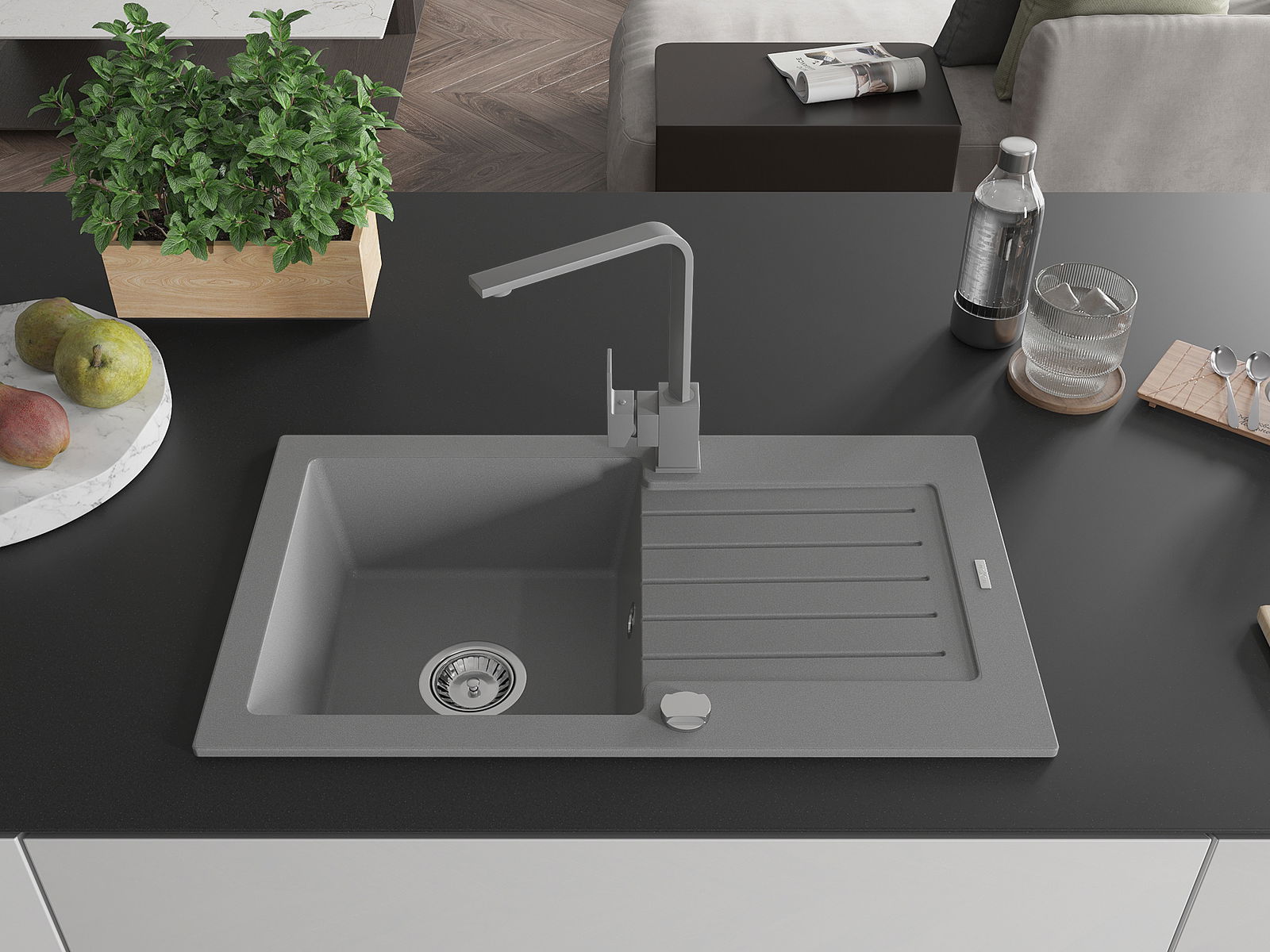 Mexen Pablo 1-medencés gránit mosogató csepegtetővel és Rita konyhai csapteleppel, szürke - 6510-71-670300-71