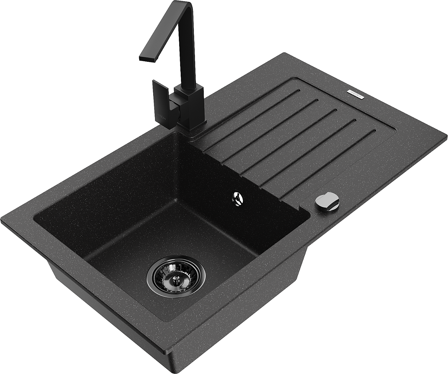 A mosogató magas minőségű gránitból készült. Elegáns, de mindenekelőtt praktikus kiegészítője minden konyhának, függetlenül annak stílusától. A gránit magas minősége és tartóssága hosszú távú használatot biztosít.