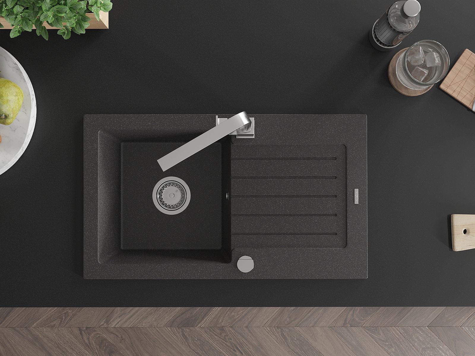 A mosogató magas minőségű gránitból készült. Elegáns, de mindenekelőtt praktikus kiegészítője minden konyhának, függetlenül annak stílusától. A gránit magas minősége és tartóssága hosszú távú használatot biztosít.