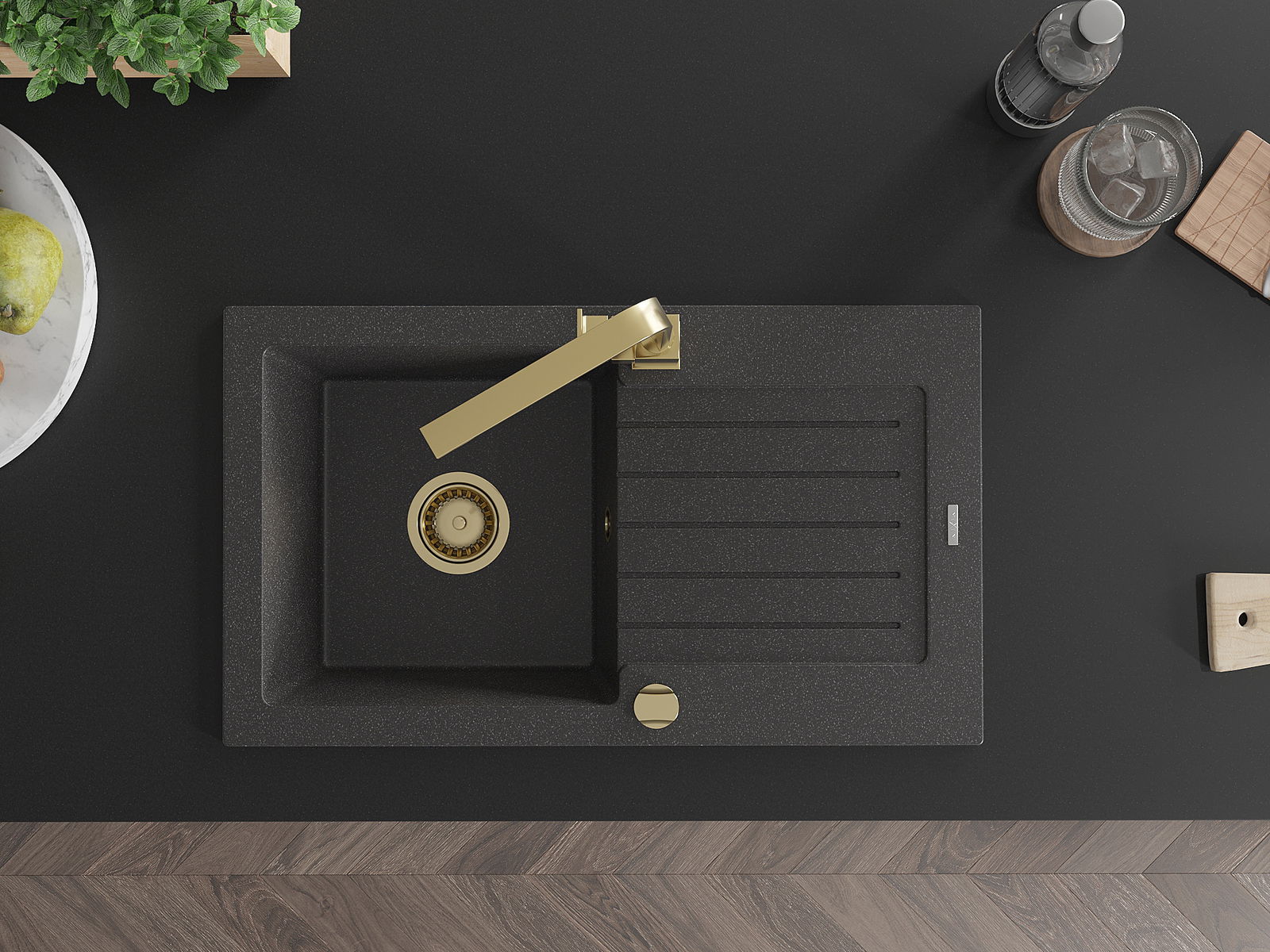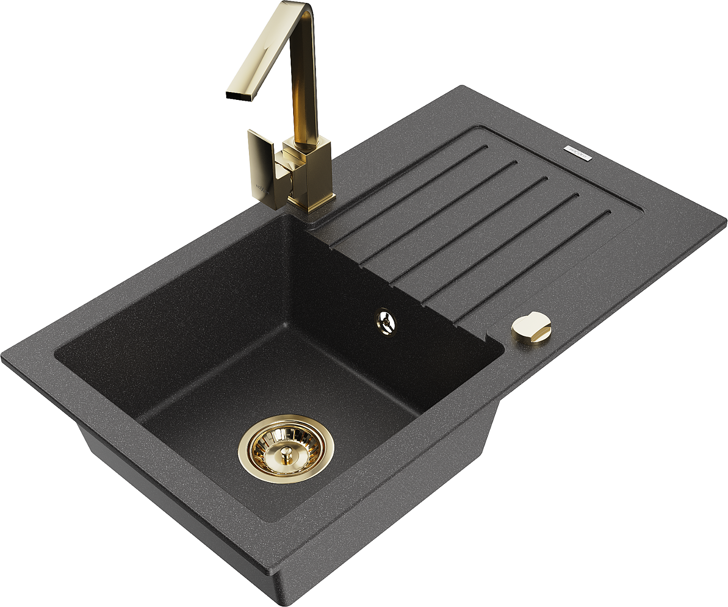 A mosogató magas minőségű gránitból készült. Elegáns, de mindenekelőtt praktikus kiegészítője minden konyhának, függetlenül annak stílusától. A gránit magas minősége és tartóssága hosszú távú használatot biztosít.