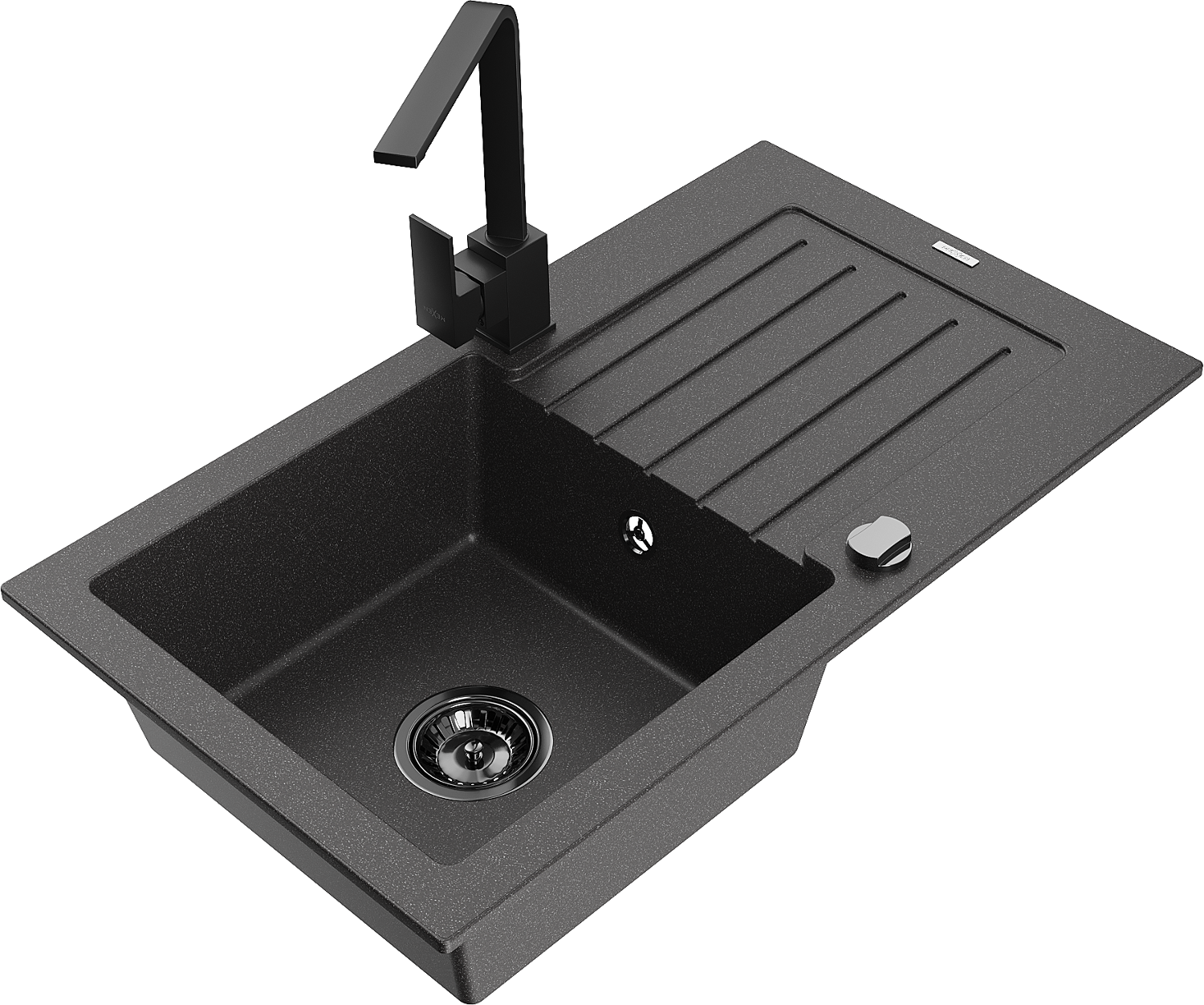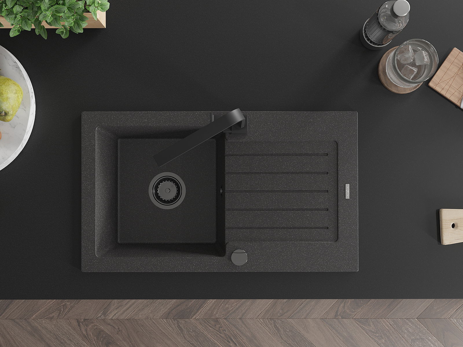 A mosogató magas minőségű gránitból készült. Elegáns, de mindenekelőtt praktikus kiegészítője minden konyhának, függetlenül annak stílusától. A gránit magas minősége és tartóssága hosszú távú használatot biztosít.