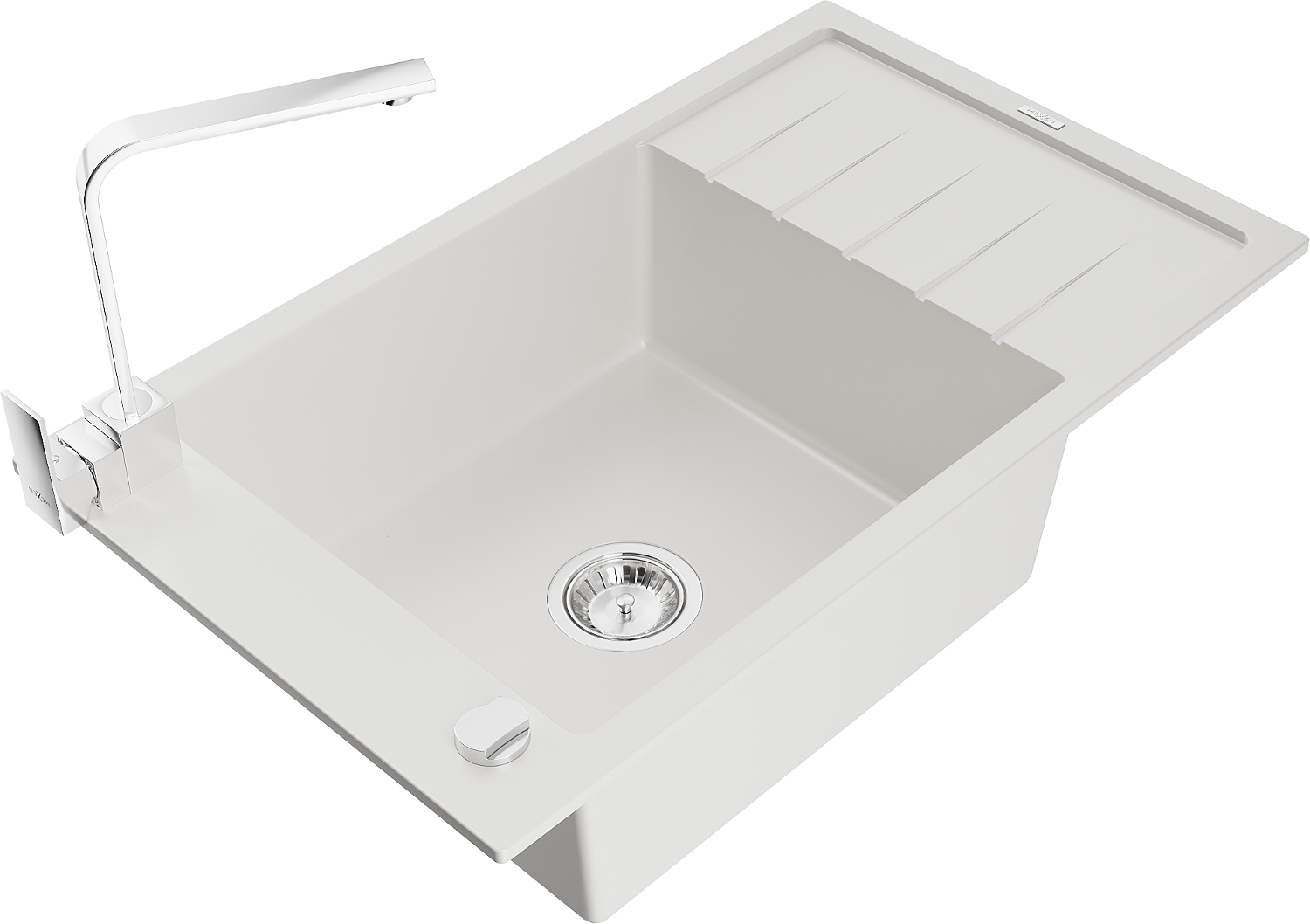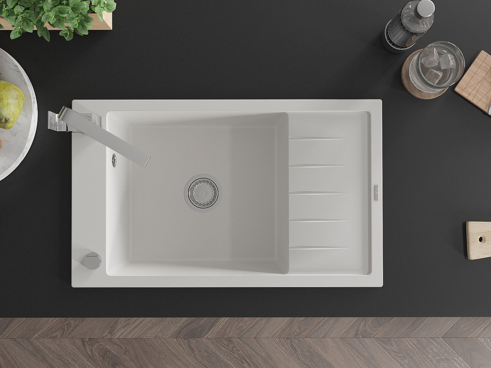 Mexen Elias egymedencés gránit mosogató csepegtetővel és Rita konyhai csapteleppel, fehér - 6511-20-670300-00