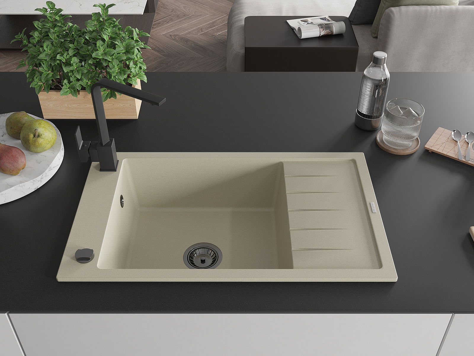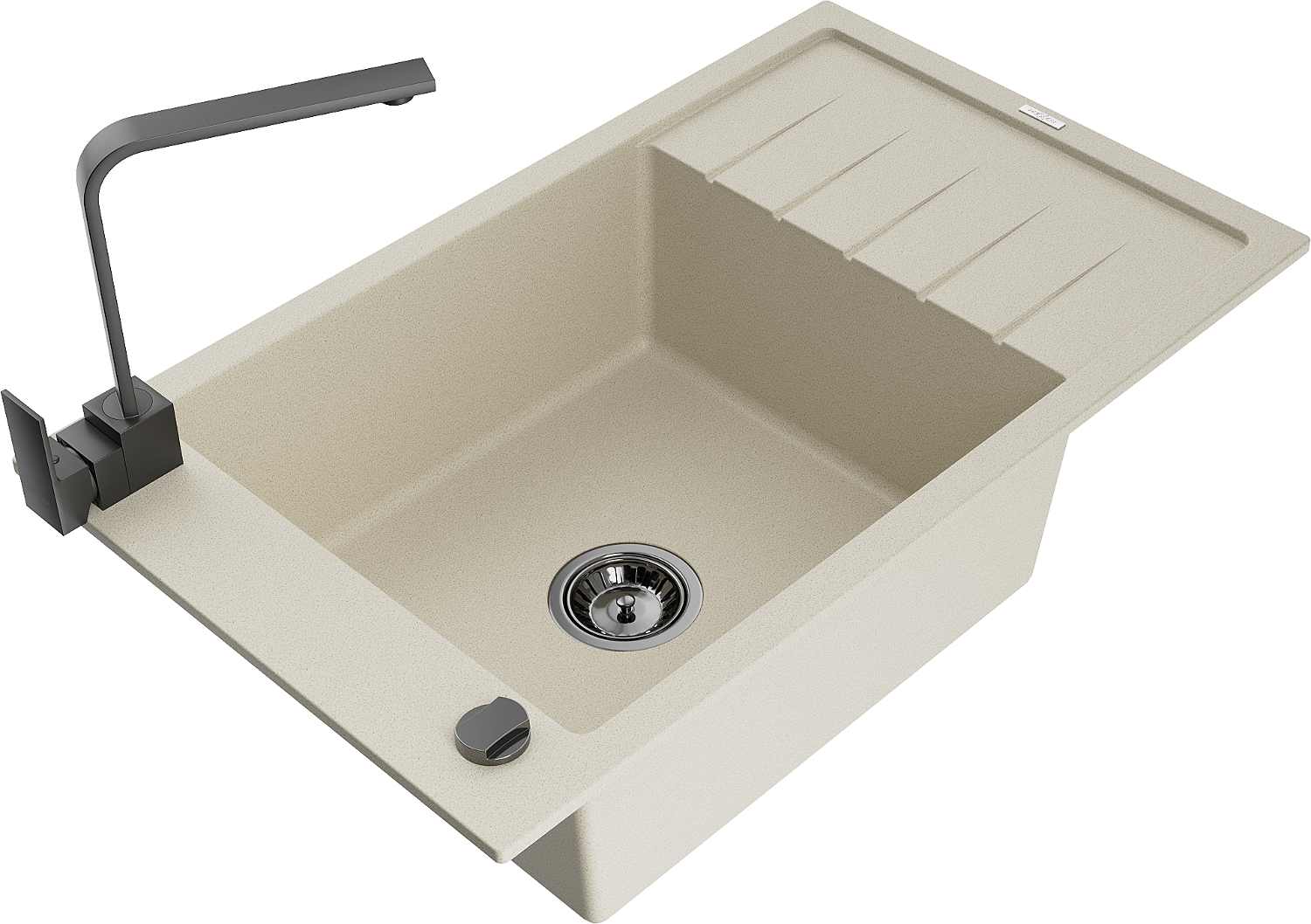 Mexen Elias egymedencés gránit mosogató csepegtetővel és Rita konyhai csapteleppel, bézs - 6511-69-670300-70