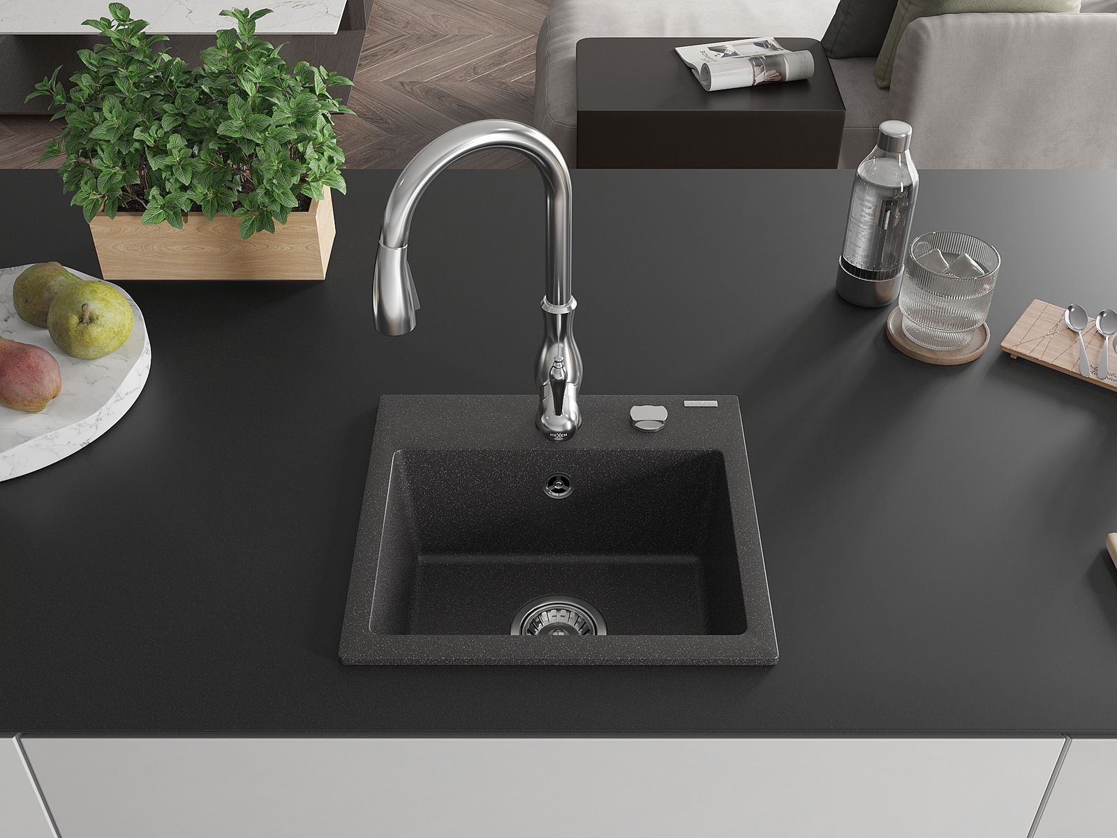 A mosogató kiváló minőségű gránitból készül. Ez egy elegáns és mindenekelőtt minden konyhához praktikus kiegészítés, stílusától függetlenül. A kiváló minőségű és a gránit tartósság biztosítja a sok éves használatát.