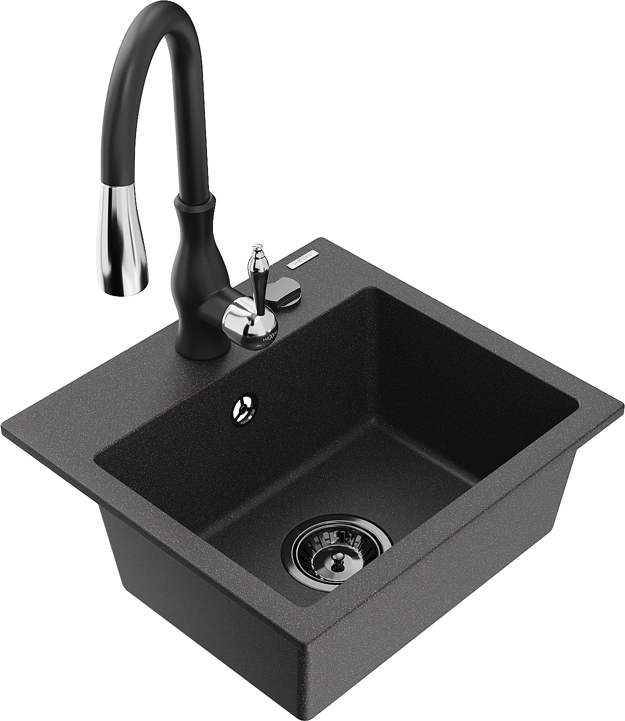 Mexen Milo gránit mosogató 1-medencés konyhai csapteleppel Savita, fekete spriccelt - 6505-76-672601-70-B