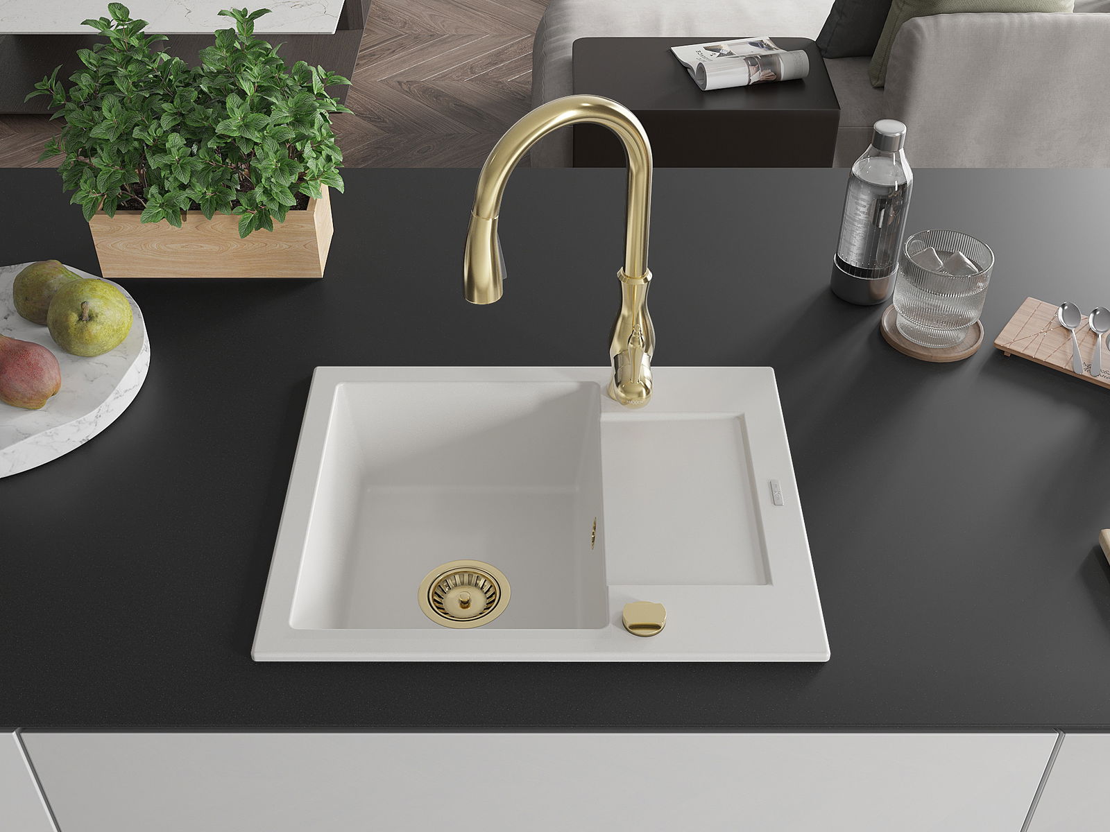 A mosogató magas minőségű gránitból készült. Elegáns, de mindenekelőtt praktikus kiegészítője minden konyhának, függetlenül annak stílusától. A gránit magas minősége és tartóssága hosszú távú használatot biztosít.