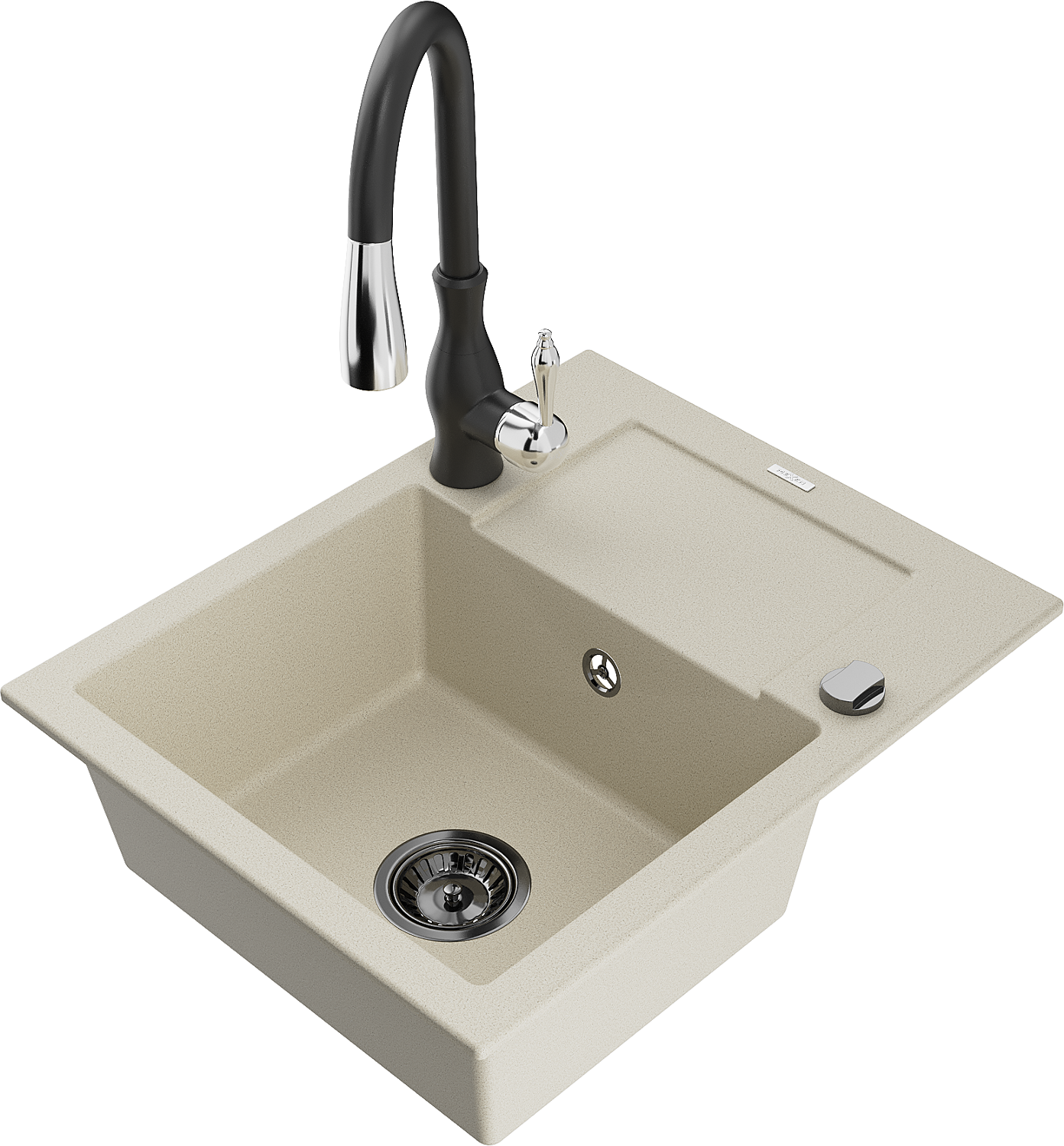 Mexen Enzo 1 medencés gránit mosogató csepegtetővel és Savita konyhai csappal, bézs - 6506-69-672601-70