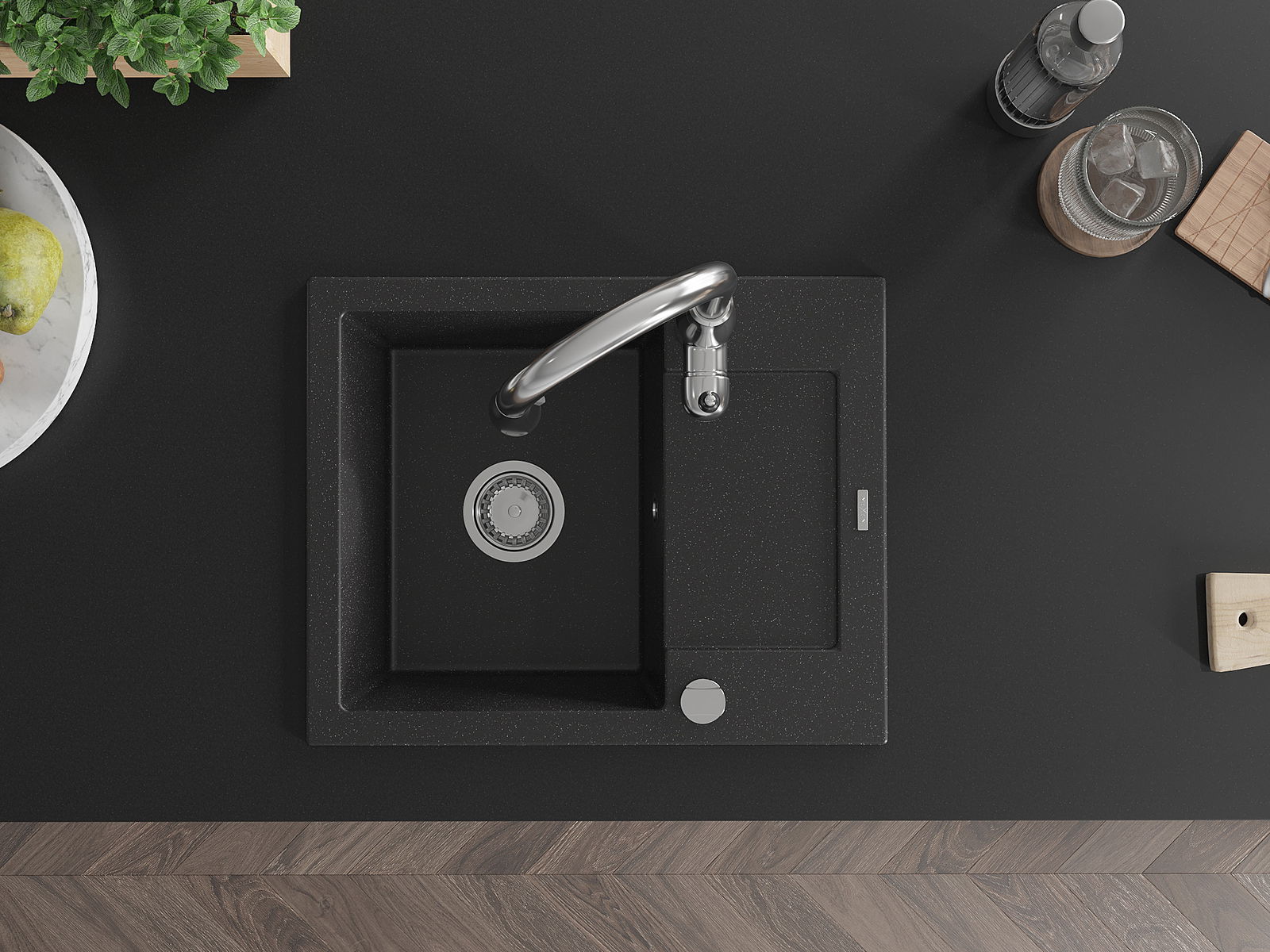 A mosogató kiváló minőségű gránitból készül. Ez egy elegáns és mindenekelőtt minden konyhához praktikus kiegészítés, stílusától függetlenül. A kiváló minőségű és a gránit tartósság biztosítja a sok éves használatát.