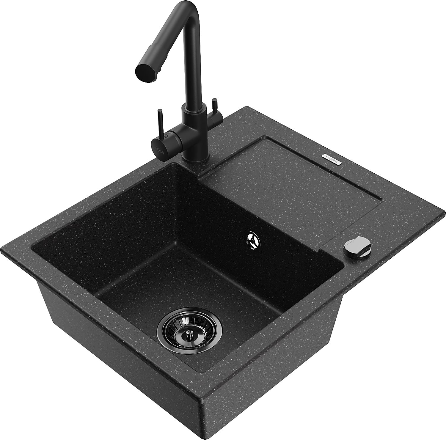 Mexen Enzo egymedencés gránit mosogató csepegtetővel és Duero konyhai csappal, fekete/ezüst metál - 6506-73-671600-70-B