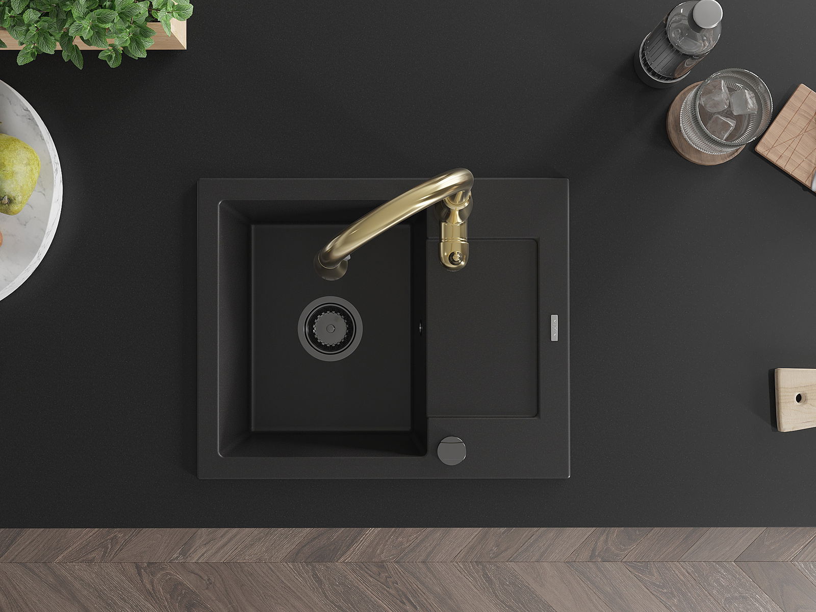 A mosogató magas minőségű gránitból készült. Elegáns, de mindenekelőtt praktikus kiegészítője minden konyhának, függetlenül annak stílusától. A gránit magas minősége és tartóssága hosszú távú használatot biztosít.