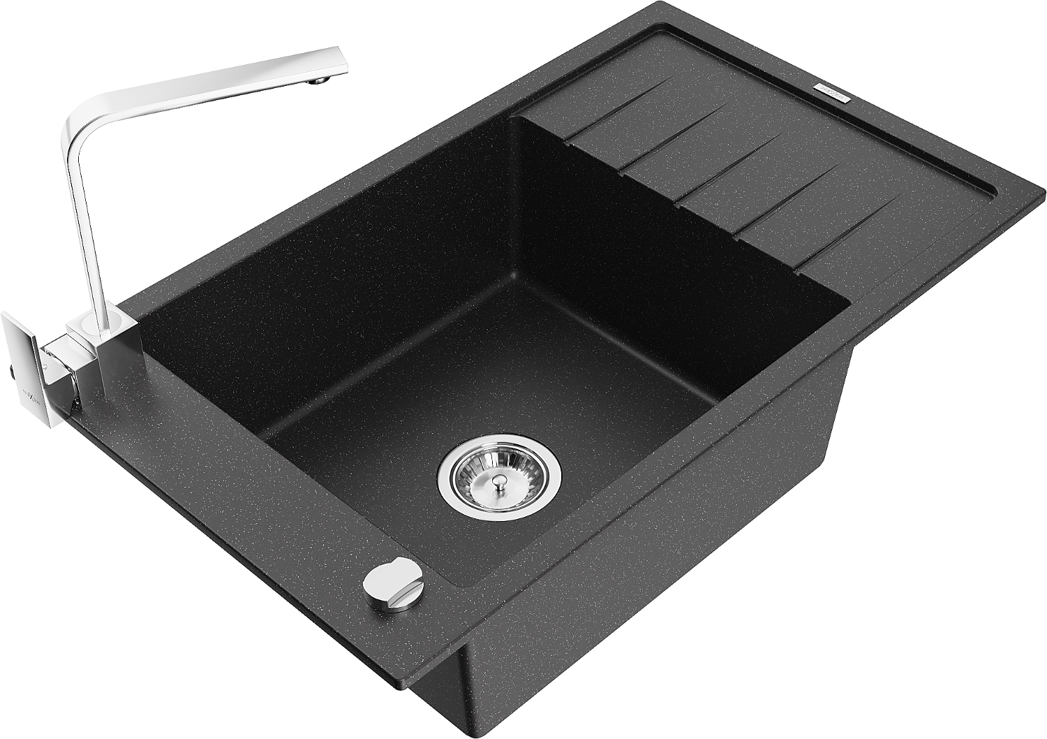 Mexen Elias egymedencés gránit mosogató csepegtető tálcával és Rita konyhai csappal, fekete/ezüst metál - 6511-73-670300-00
