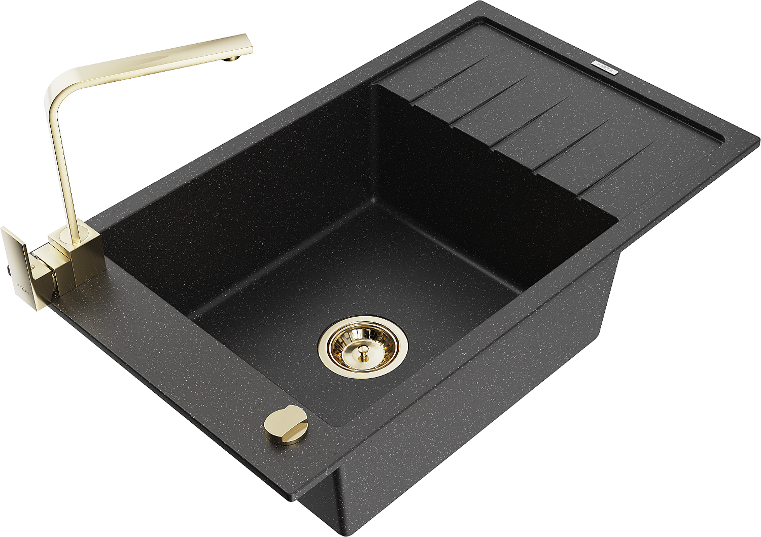 Mexen Elias gránit mosogató 1-medencés csepegtetővel és Rita konyhai csapteleppel, fekete/ezüst metál - 6511-73-670300-50