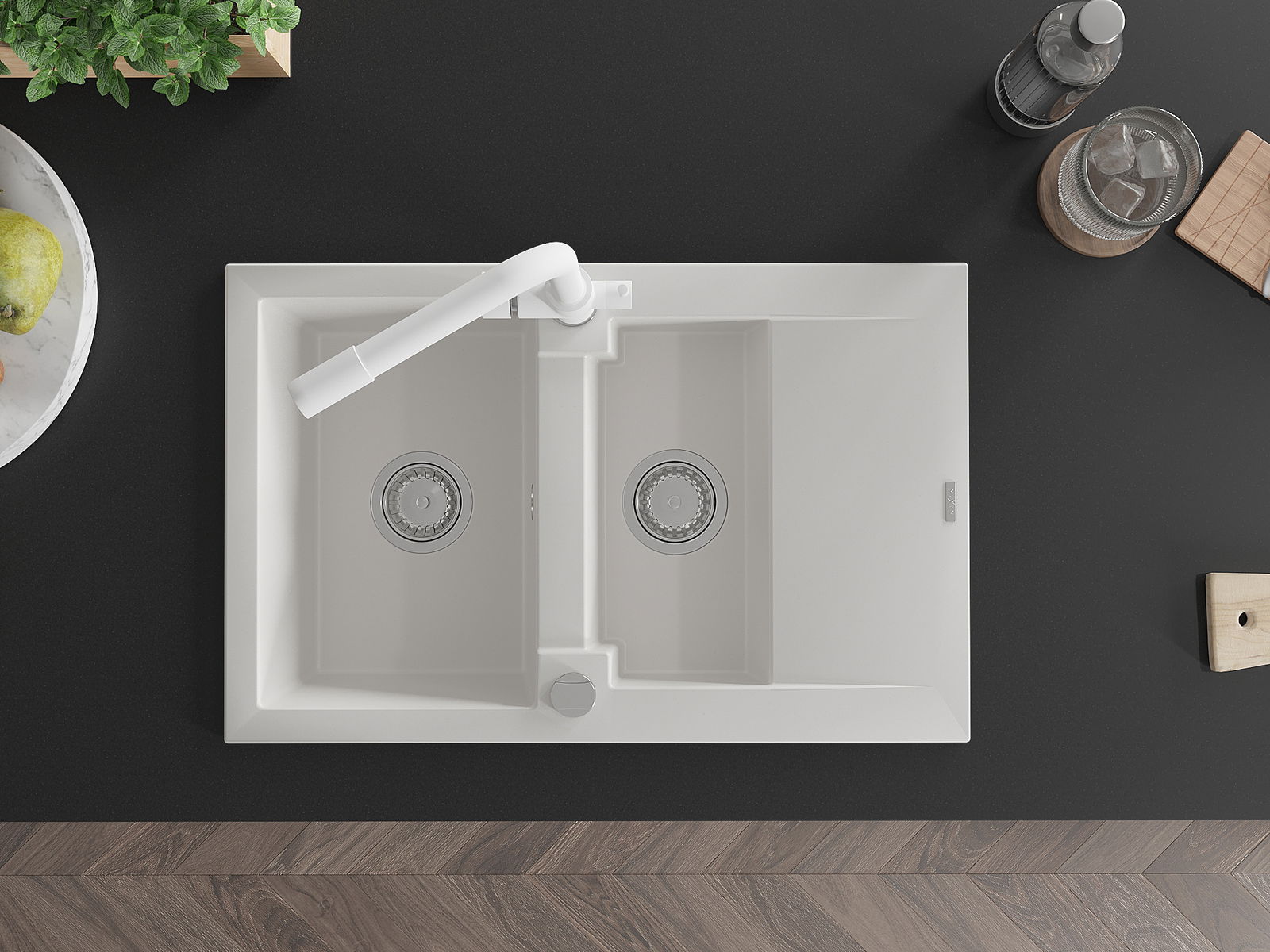 A mosogató felülete ellenáll a foltoknak és a elszíneződésnek, amelynek köszönhetően könnyű megtisztítani és hosszú ideig megtartja színét. Esztétikai és gyakorlatilag kiegészítve minden konyhát.