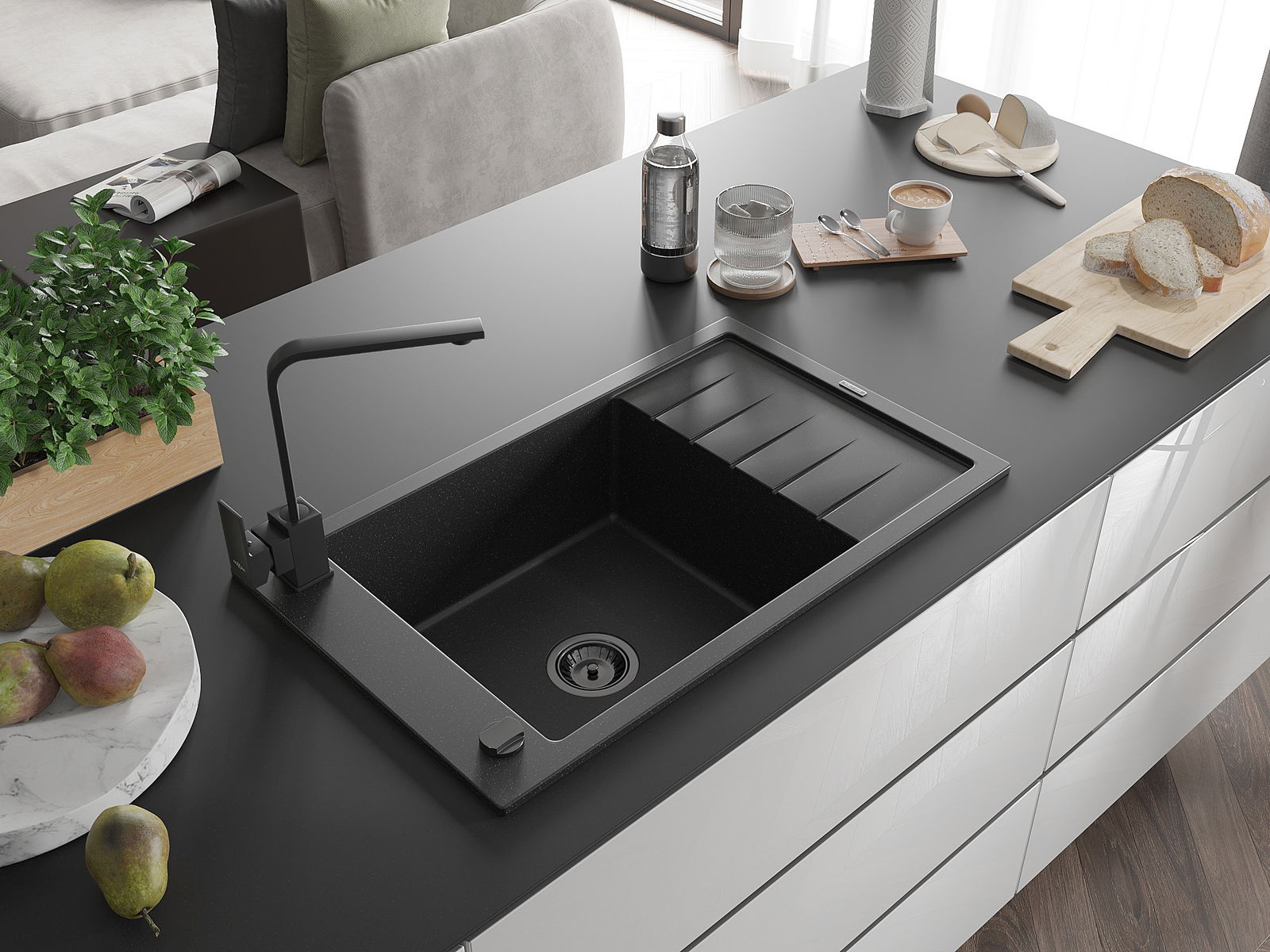A mosogató kiváló minőségű gránitból készül. Ez egy elegáns és mindenekelőtt minden konyhához praktikus kiegészítés, stílusától függetlenül. A kiváló minőségű és a gránit tartósság biztosítja a sok éves használatát.