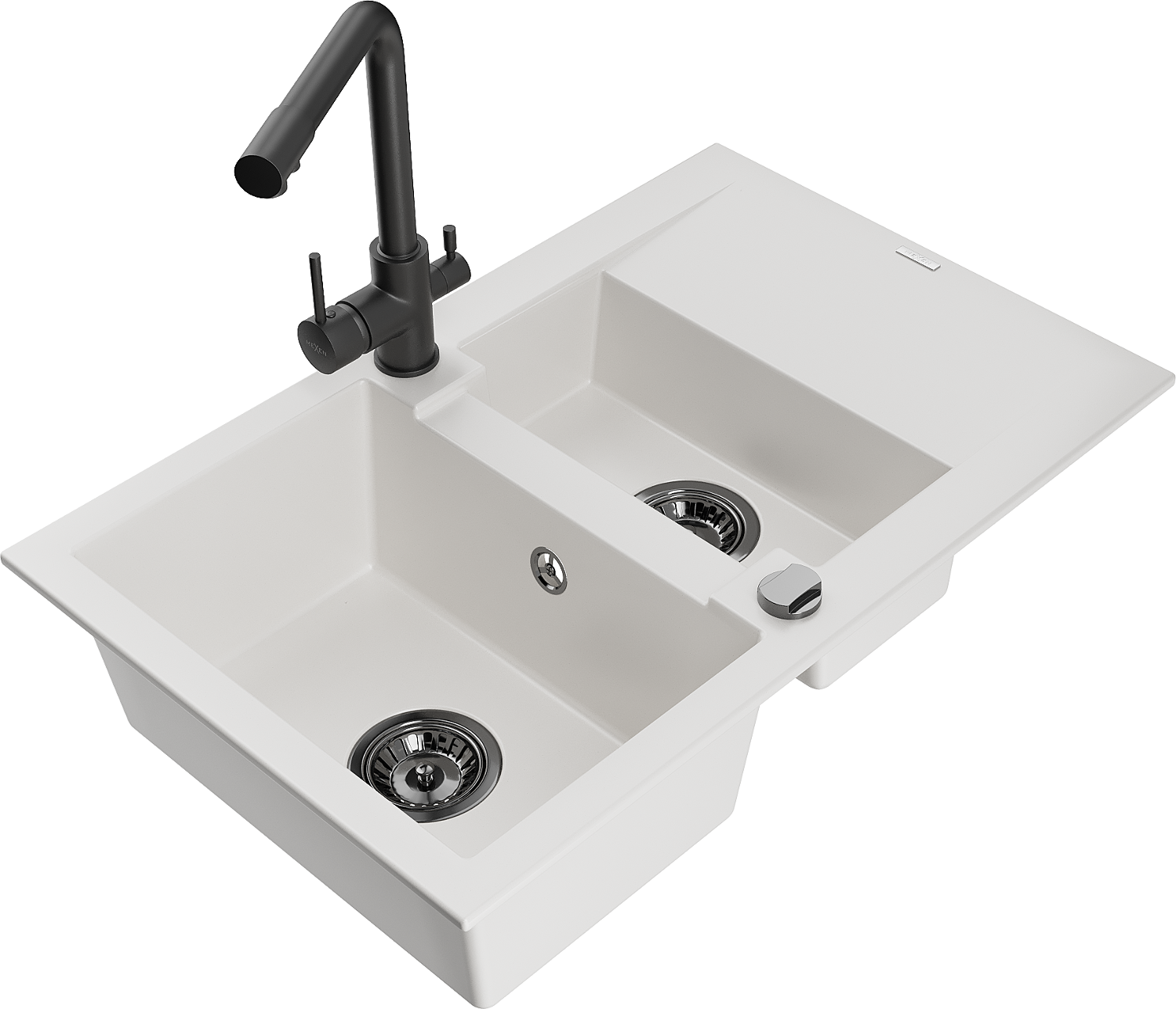 Mexen Gaspar gránit 1,5-medencés mosogató csepptálcával és Duero konyhai csapteleppel, fehér - 6507-20-671600-70