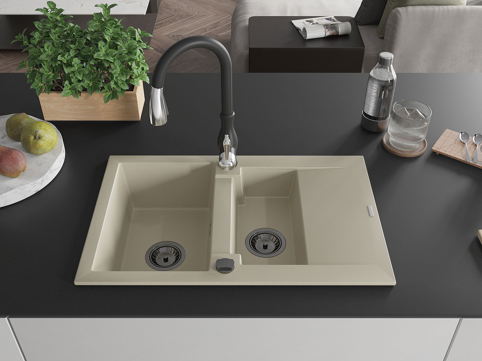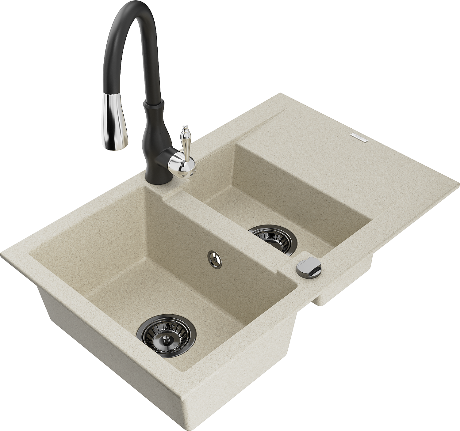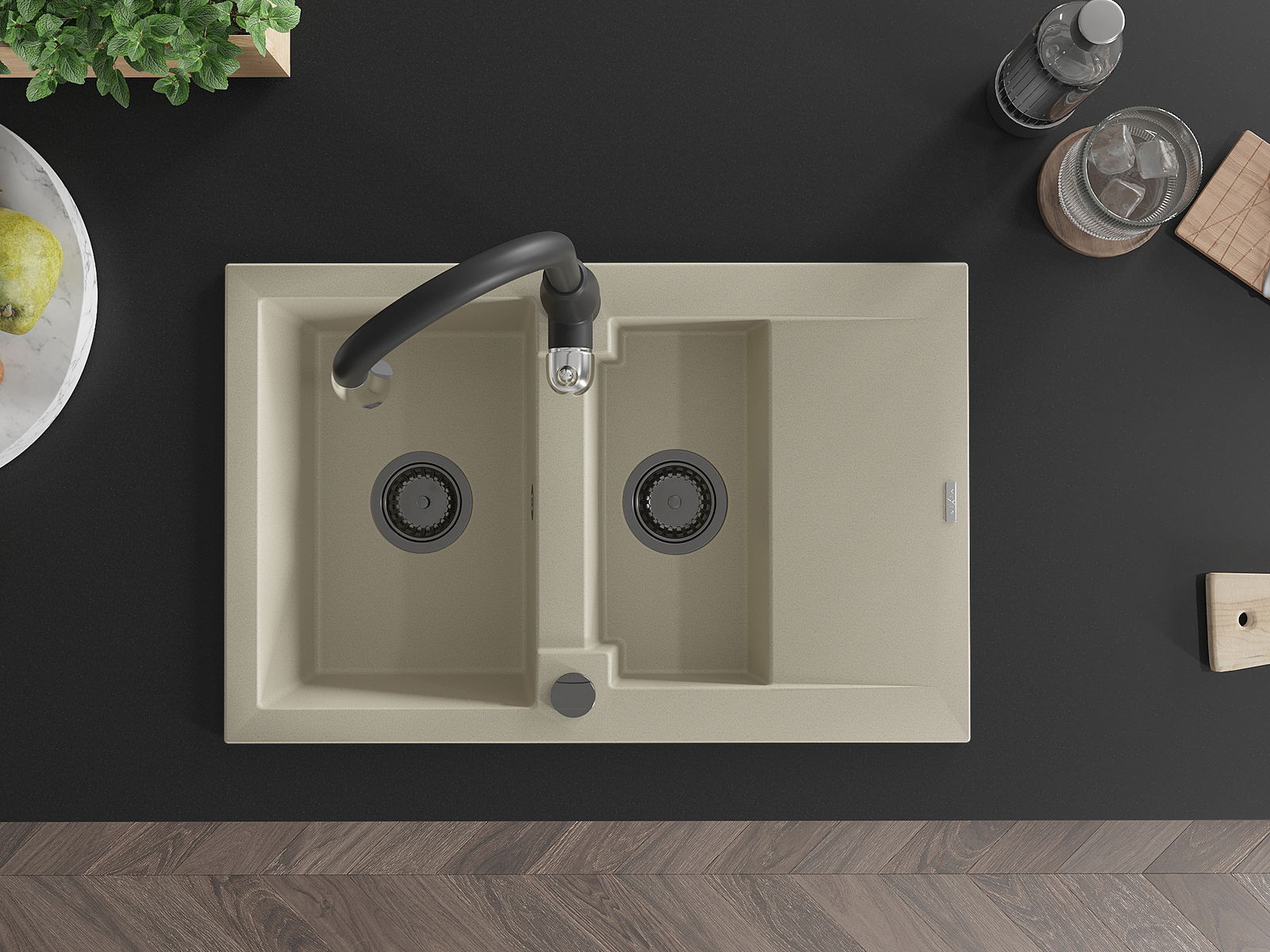 Mexen Gaspar 1,5-medencés gránit mosogató csepegtetővel és Savita konyhai csappal, bézs - 6507-69-672601-70
