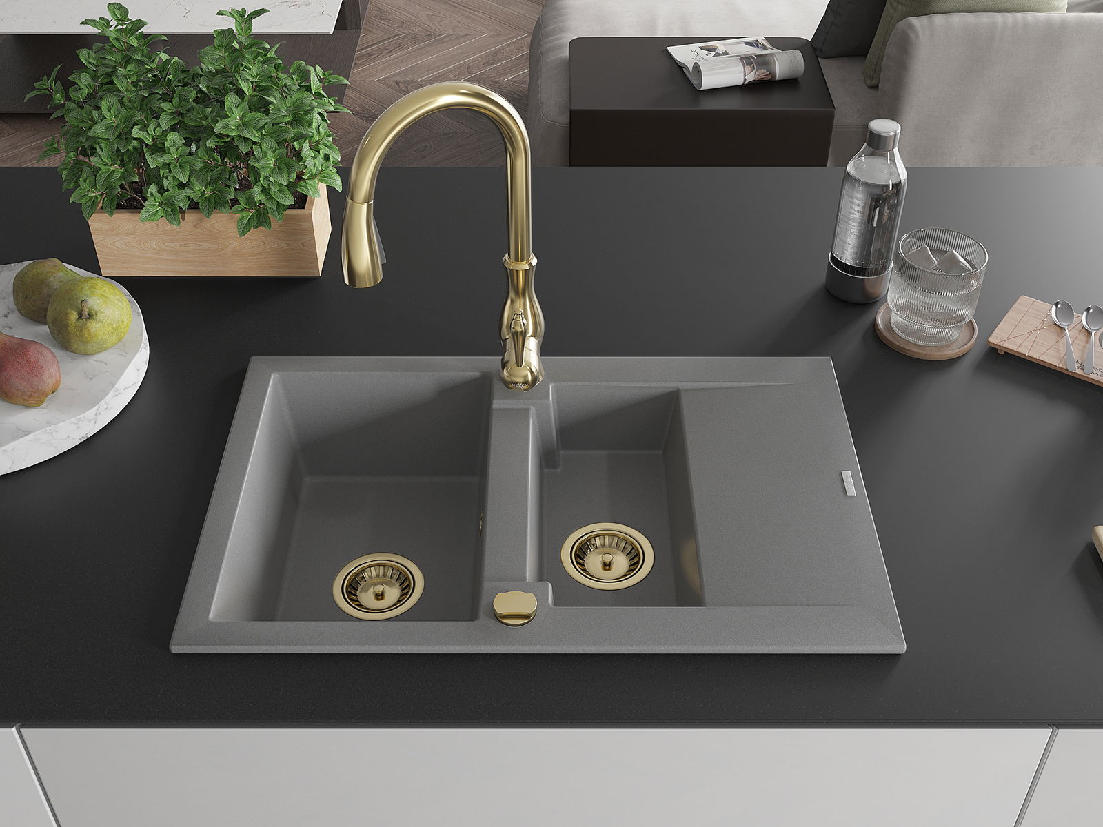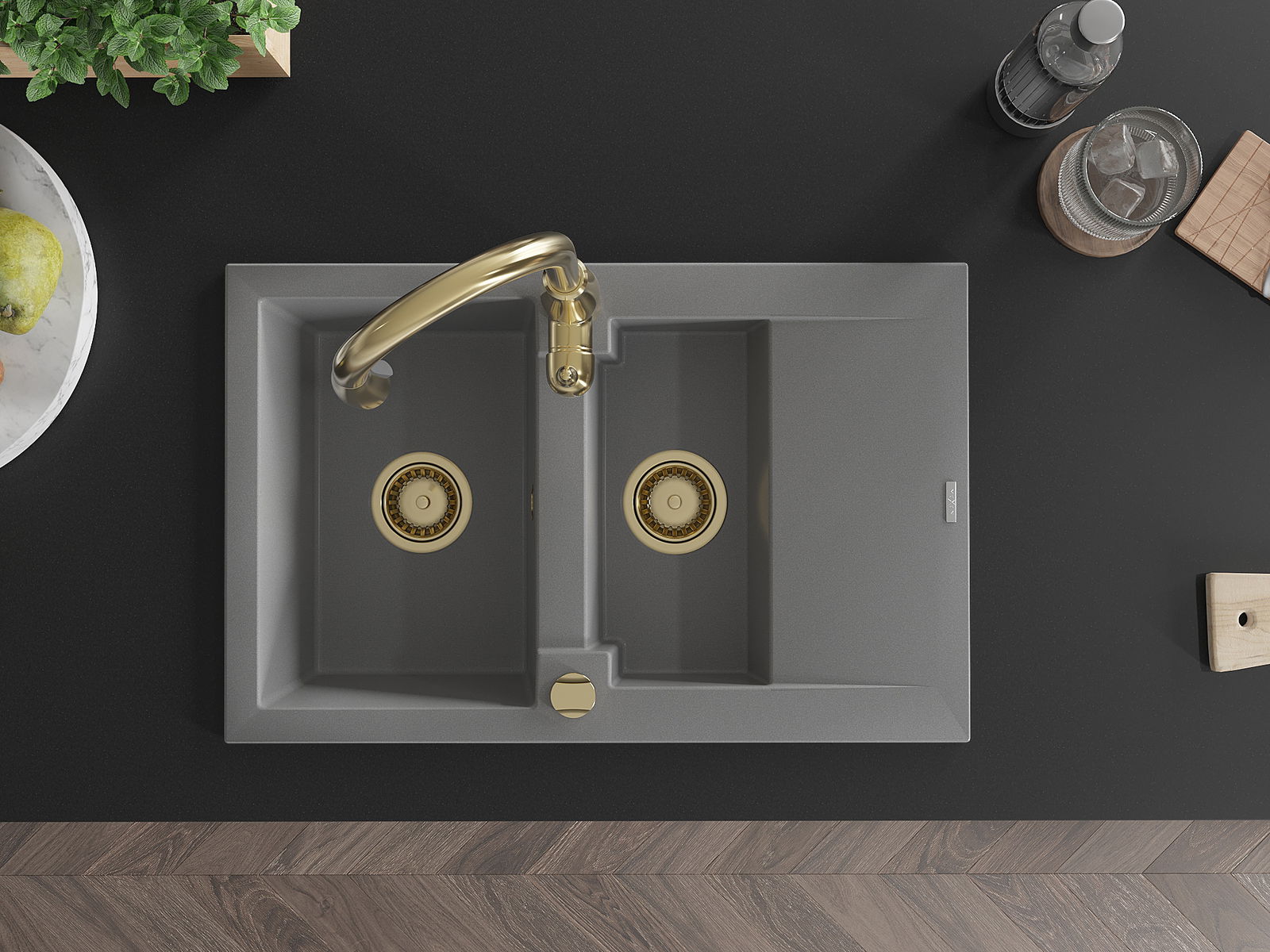 A mosogató kiváló minőségű gránitból készül. Ez egy elegáns és mindenekelőtt minden konyhához praktikus kiegészítés, stílusától függetlenül. A kiváló minőségű és a gránit tartósság biztosítja a sok éves használatát.