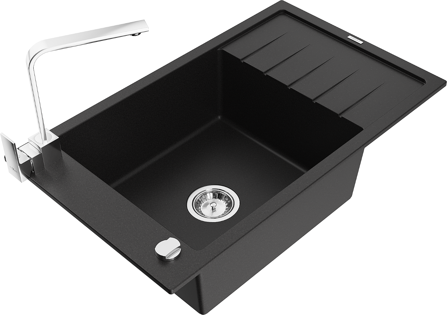 Mexen Elias egymedencés gránit mosogató csepegtetővel és Rita konyhai csappal, fekete - 6511-77-670300-00