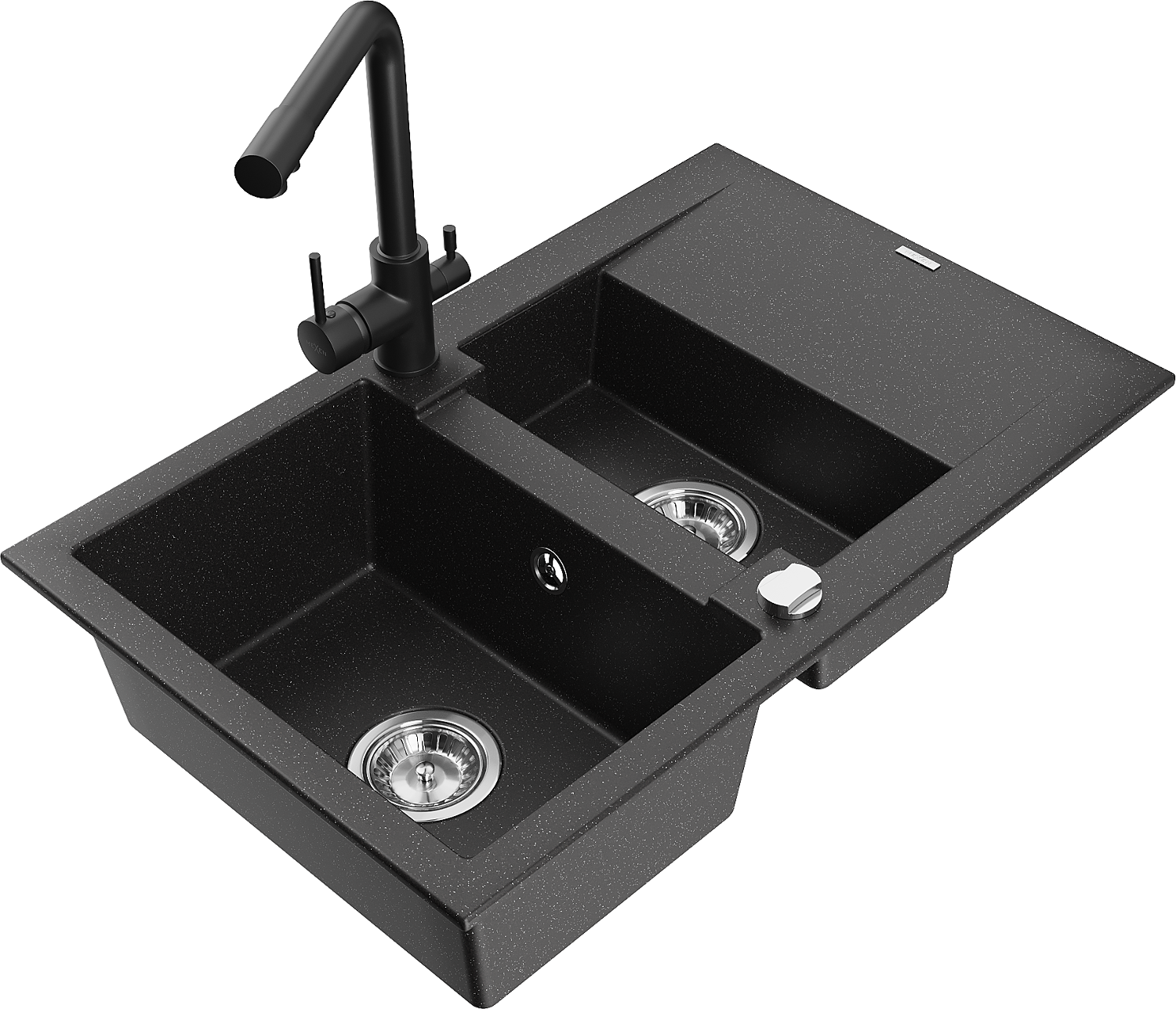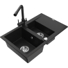 Mexen Gaspar 1,5 rekeszes gránit mosogató csepegtetővel és Duero konyhai csapteleppel, fekete/ezüst - 6507-73-671600-70