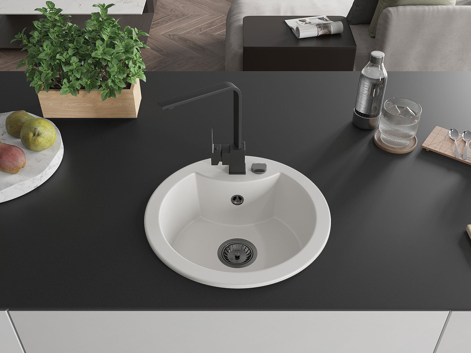 A mosogató magas minőségű gránitból készült. Elegáns, de mindenekelőtt praktikus kiegészítője minden konyhának, függetlenül annak stílusától. A gránit magas minősége és tartóssága hosszú távú használatot biztosít.