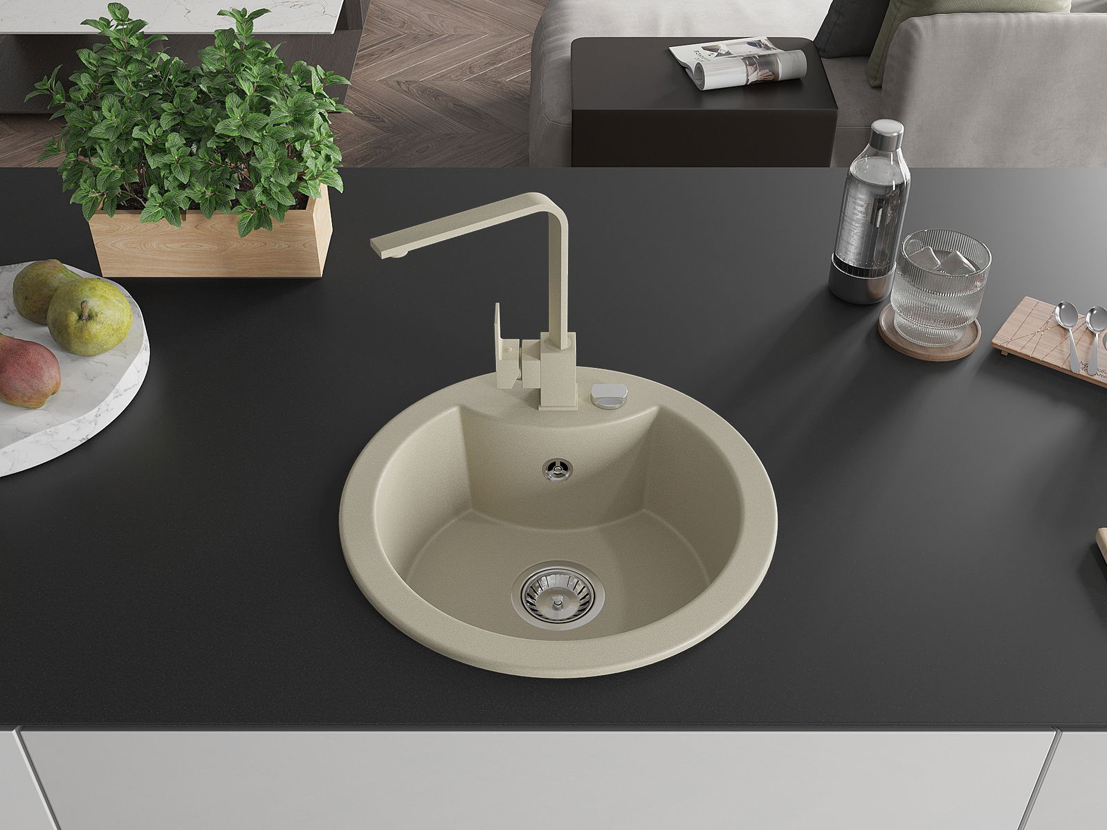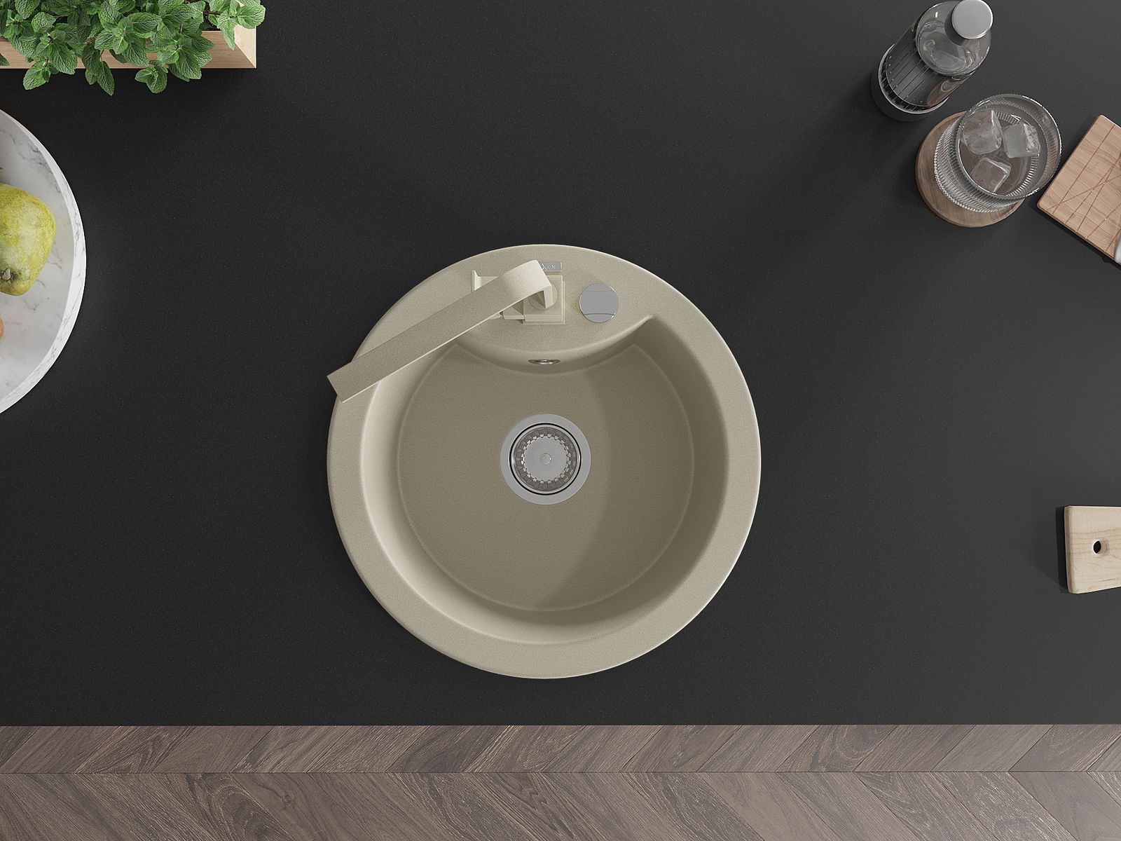 A mosogató magas minőségű gránitból készült. Elegáns, de mindenekelőtt praktikus kiegészítője minden konyhának, függetlenül annak stílusától. A gránit magas minősége és tartóssága hosszú távú használatot biztosít.