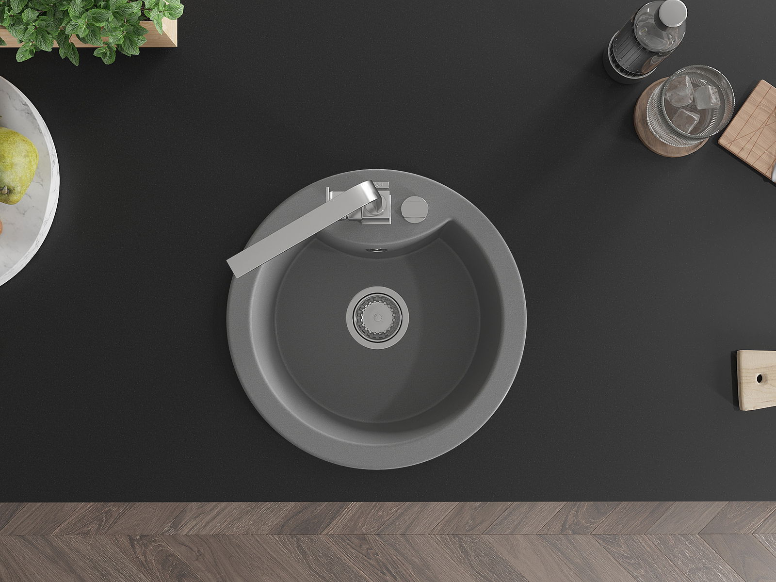 A mosogató kiváló minőségű gránitból készül. Ez egy elegáns és mindenekelőtt minden konyhához praktikus kiegészítés, stílusától függetlenül. A kiváló minőségű és a gránit tartósság biztosítja a sok éves használatát.